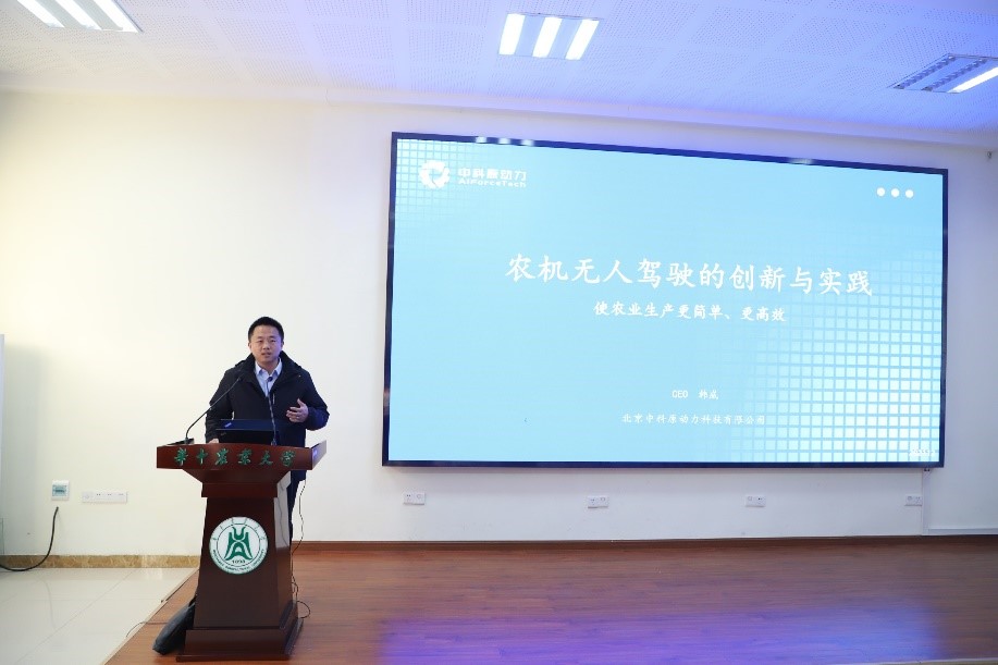 北京中科原动力科技有限公司CEO韩威则向同学介绍了从事无人作业农机的初衷以及目前在无人作业农机方面所取得地进展。他谈到,我们国家的农业,第一个特点是农业生产效率低,第二个特点是从事农业劳动的人数在剧减,未来谁去种田,谁会把这个田种好,就成为了我们需要解决的问题。经过两年多的在农田一线的实践,他们团队研制的无人农机基本完成了主粮的全过程的耕种管收无人化作业。最后,他表示,非常希望华农bevictor1946韦德官网的同学们毕业后能够加入到原动力,为原动力注入更多新鲜的血液。
