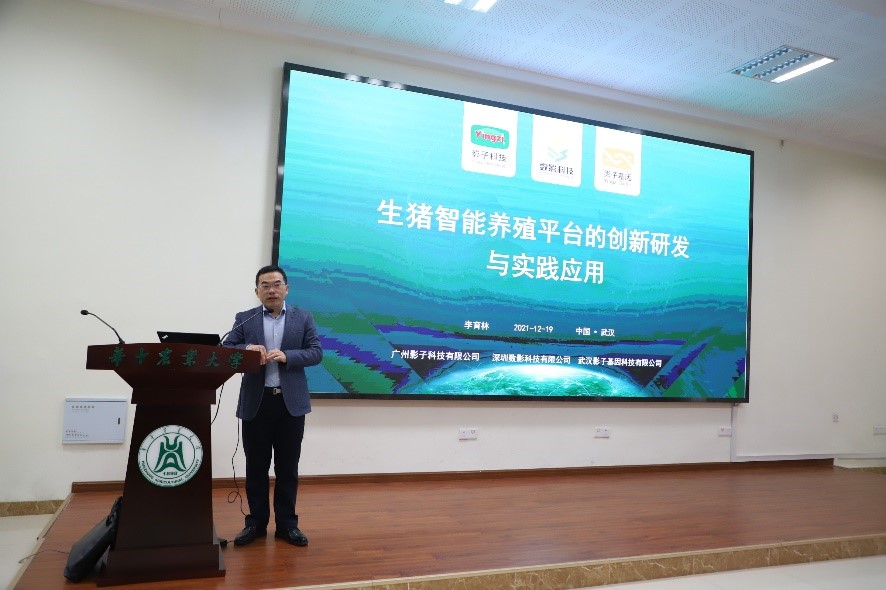 广州影子科技有限公司首席运营官李育林则向同学们介绍生猪智能养殖平台的创新研发和实践应用。他表示,产业互联网是一个大的发展趋势,是农业今后大有作为的一个点,生猪智能养殖平台就是基于区块链、人工智能、基因科学、大数据、物联网等技术,实现了从农场到餐桌的产业互联网智能连接,该智能平台集饲料加工、智能养猪、生猪交易、屠宰加工、零售为一体,实现了产品可追溯。最后,他表示期待能够有更多bevictor1946韦德官网的优秀学子们加入到他们的研发团队,同时真诚的希望公司领导能够带队到公司去考察指导工作。