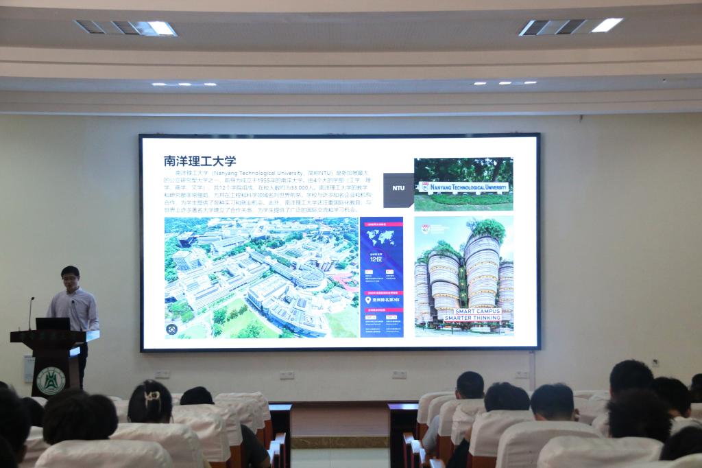 徐勤超鼓励同学们把握当前发展机遇,新加坡为了保持华人的比例,会对国内优秀学子提供全额读书的机会。徐勤超详细介绍了所去的南洋理工大学,“南洋理工大学科研实力强劲,它有很多工程学科排名全球第一,有很多大公司在公司开设实验室,为员工们提供了良好的实操环境。”徐勤超用一幅幅生动的图片为大家展现国外实验室的基本情况,他谈到,课堂上同学们会发表自己的观点进行深入交流,课下员工们积极主动参与科研比赛,拥有良好的学术氛围。