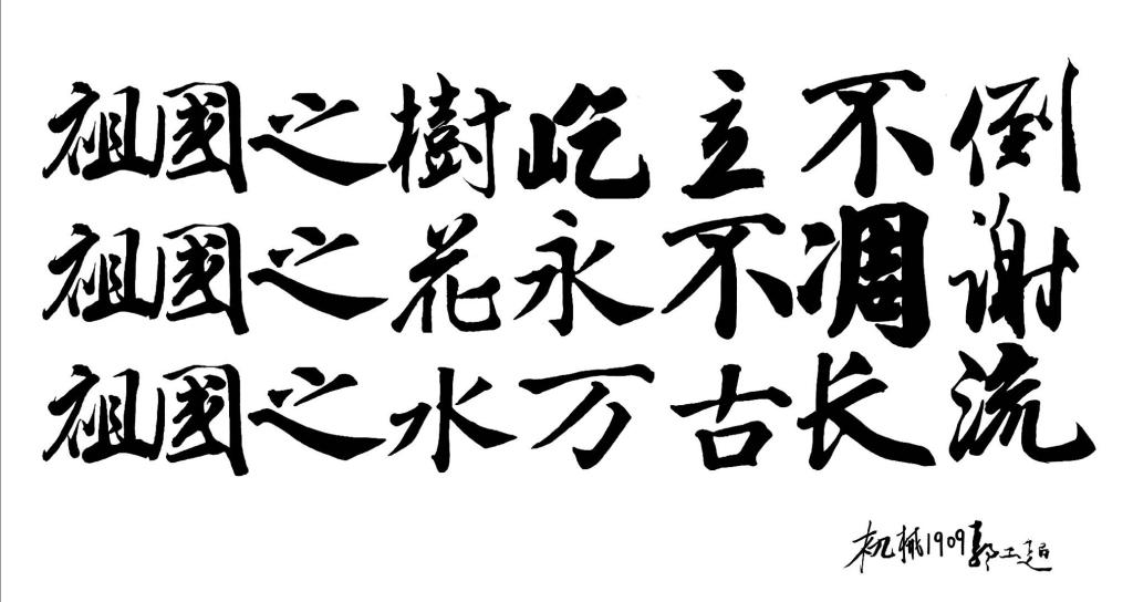 还有同学用书法作品表达自己对祖国的祝福。农工1902班黄涵雨挥笔写下:雾霾渐散,春花又放,祖国河山正好,无论何时,我愿与祖国同在。机械1909郭卫超写下:祖国之树屹立不倒;祖国之花永不凋谢;祖国之水万古长流。机械1804班胡江波、胡函的抗“疫”海报,机械1807班高贺的抗“疫”手绘,还有机械1810班的抗“疫”卡通都令人印象深刻。