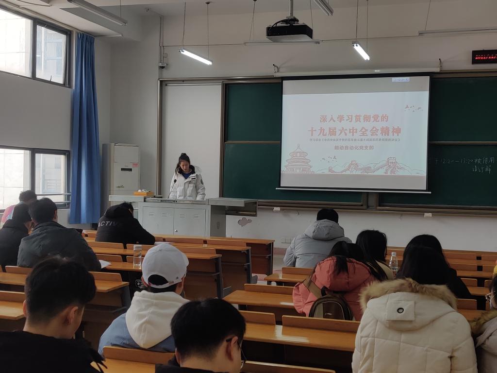 (通讯员 黄韵谐)2021年12月28日中午,能动自动化党支部在四教C203召开“守正创新,强化政治建设”主题党日活动,孙梦雨和廖婷两名党员分别带领支部学习了十九届六中全会精神和习近平总书记在全国宗教工作会议上的讲话精神,党支部书记卜祥利老师带领大家学习了习近平总书记“七一”讲话精神,支部全体党员参加主题党日活动。