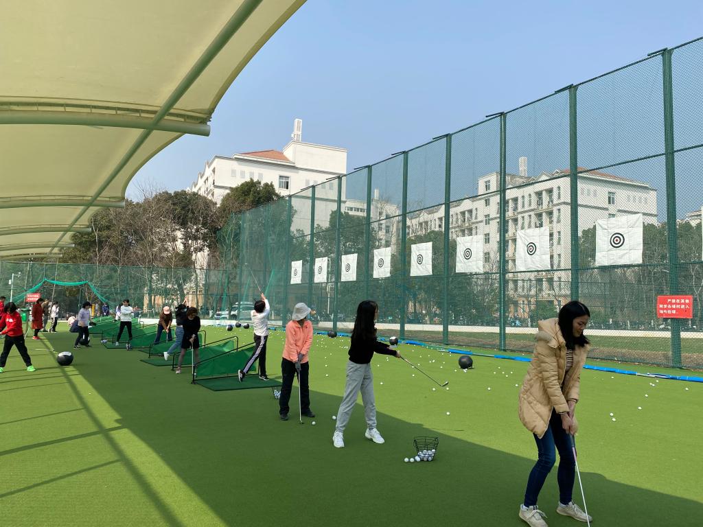 来到高尔夫训练场之后,教练并没有第一时间教老师们如何打高尔夫,而是先卖了个关子,让老师们自行体验。没有经过指导,老师们很难顺利地把球打出去。“大家可能觉得打高尔夫球是一项很简单的运动,实际上高尔夫球是仅次于棒球的,世界难度第二的球类运动。它需要的不仅是精神力,还需要非凡的控制能力,手眼的协调以及身体的平衡。”随后教练以泼水为例,向老师们详细介绍了高尔夫球的动作要领,瞄准、起杆、转胯、挥杆、击球、送杆、收杆。经过教练的耐心指导,老师们的挥杆动作越来越标准,击球也越来越顺畅。“为了打出完美的一杆,自己需要在每个细节处都做到位,高尔夫真是一项有趣的运动。”马丽娜老师说道。