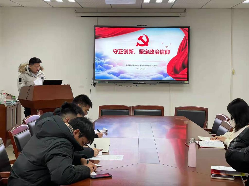 2021年12月27日,为进一步学习十九届六中全会精神,加强党员思想建设,坚定政治信仰,bevictor1946韦德官网柑橘机械化生产技术与装备研究生党支部在工程楼B311会议室开展“守正创新,坚定政治信仰”主题党日活动,胡边成同志主持该会议。
