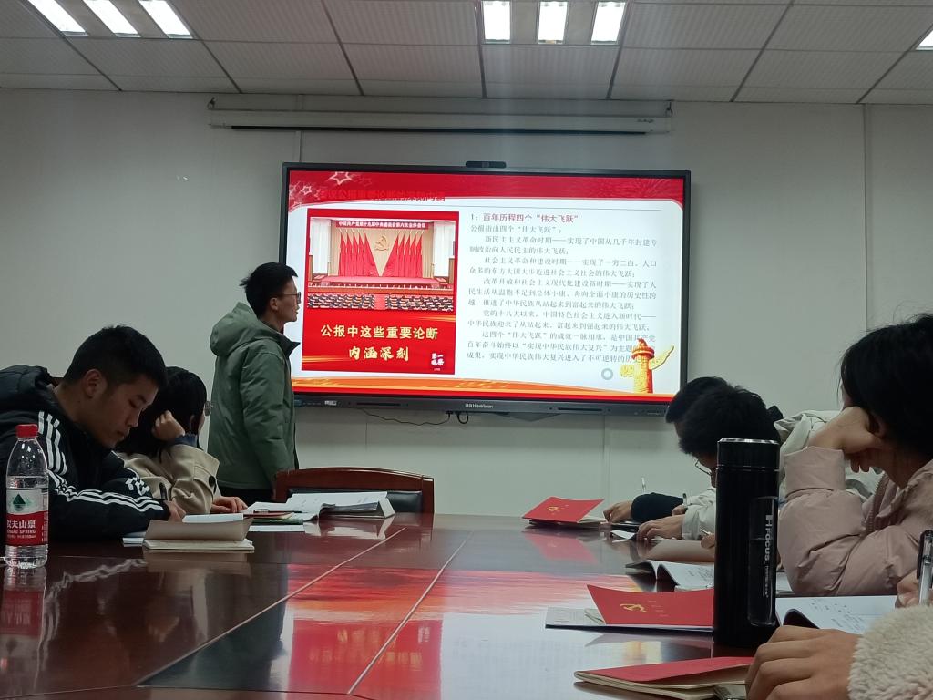 顾志运同志领学十九届六中全会精神。他在讲解会议公报重要论断的深刻内涵时提到,中国共产党百年奋斗的历史意义在于从根本上改变了中国人民的前途命运;开辟了实现中华民族伟大复兴的正确道路;展示了马克思主义的强大生命力;深刻影响了世界历史进程;锻造了走在时代前列的中国共产党。此外,他就四个“伟大飞跃”、两个“确立”、“十个坚持”的具体内容进行详细解说。