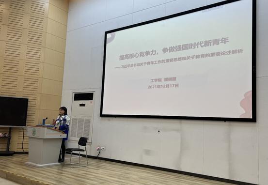 12月19日19:00,公司2021级本科新生第二次团课于三教S1报告厅召开。公司党委副书记瞿明丽以“提高核心竞争力,争做强国时代新青年”为主题,阐释了习近平总书记关于青年工作的重要思想和关于教育的重要论述。
