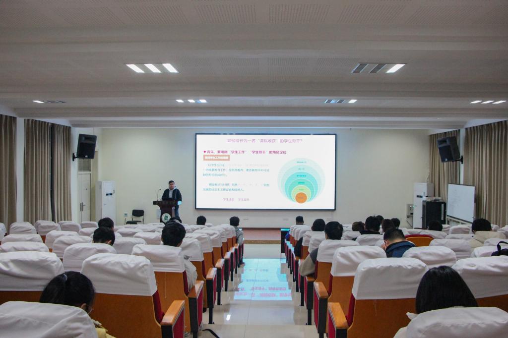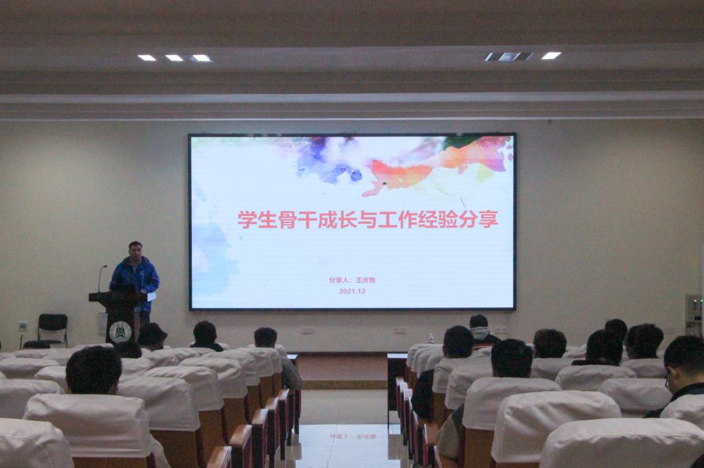 12月2日晚,公司在工程楼A111报告厅举办“员工领导力提升计划”系列培训,2020级硕士研究生王庆鲁分享了员工骨干成长与工作经验。