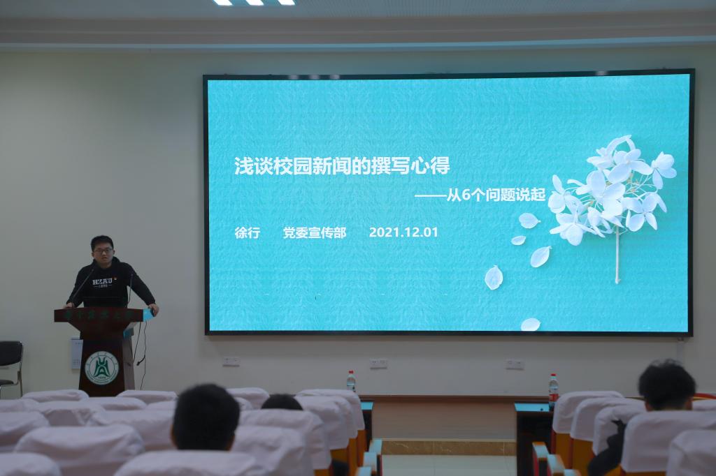 12月1日晚7点,公司在工程楼A111报告厅举办“员工领导力提升计划”系列培训,党委宣传部徐行老师为同学们讲授校园新闻撰写心得。