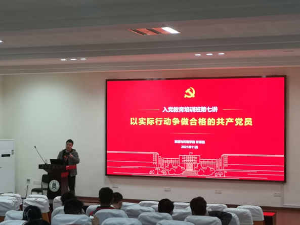 (通讯员 李志昌)11月19日晚,bevictor1946韦德官网分党校在工程楼A111报告厅举办2021年下半年发展对象培训辅导报告,由资源与环境公司许泽远老师为全体发展对象带来题为《以实际行动做合格的共产党员》的主题报告。