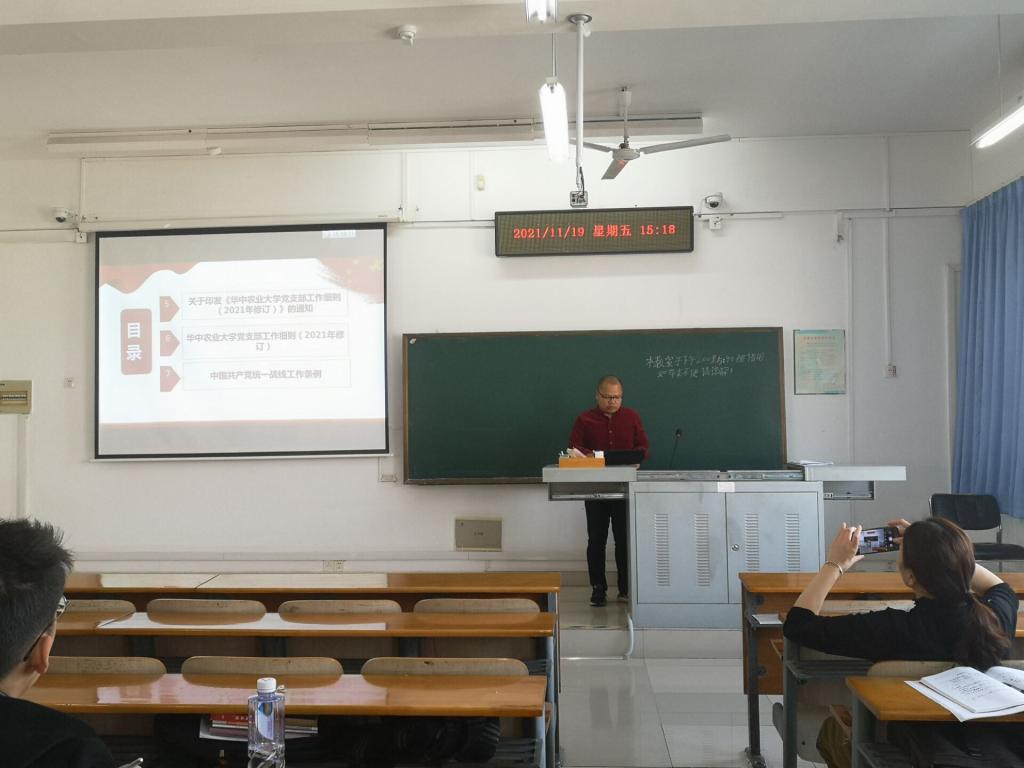 高大新同志带领全体党员同志逐条解读分析了《bv1946伟德国际始于英国党支部工作细则》,从党支部与党员的关系、党支部的工作机制、党支部的建设等多方面系统性、全面性地向全体党员们阐述了党支部的工作细则。