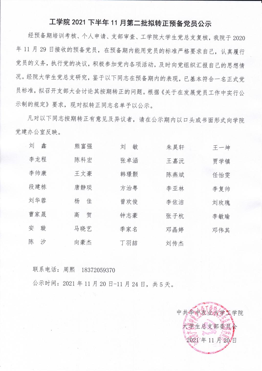 2021下半年11月第二批拟转正预备党员公示