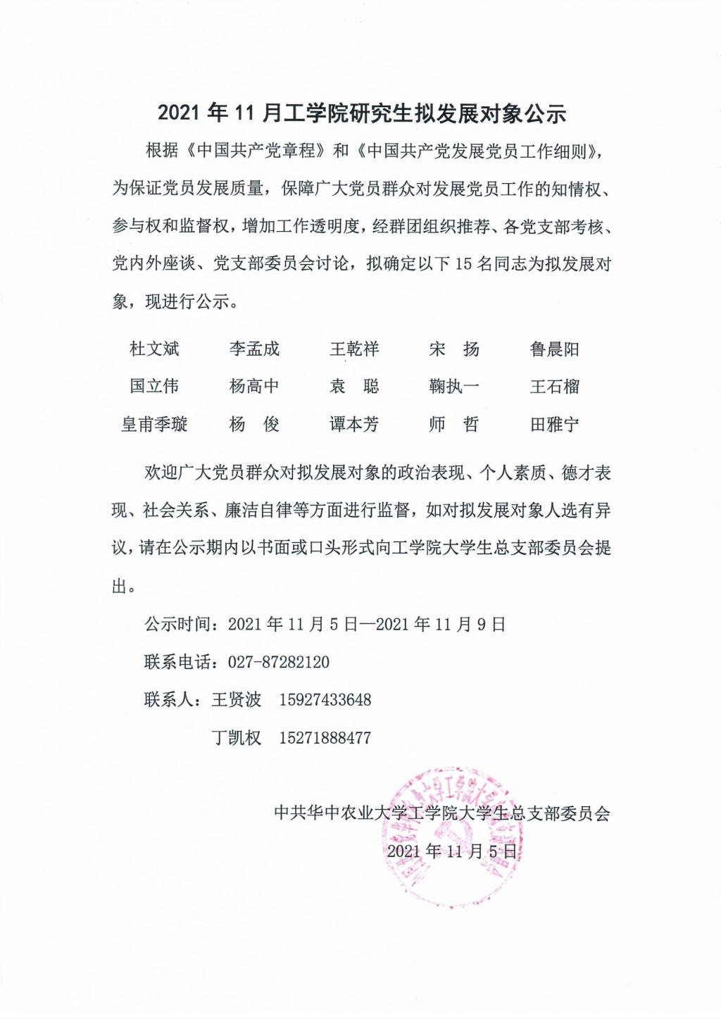 【研】2021年11月bevictor1946韦德官网研究生拟发展对象公示