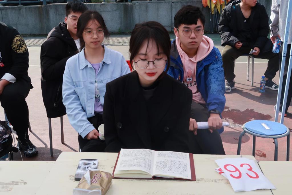 帐篷内员工骨干和党员轮流值班,每位值班同学在值班期间都会密切关注赛后到帐篷休息运动员的情况,并及时应对突发情况。丁羽喆同志表示道:“对于1500米、5000米这种长跑项目,运动员体力消耗巨大,在结束比赛后,我们会立马去搀扶运动员到值班点休息,及时提供葡萄糖水、食物以补充能量和体力,并时刻关注他的身体状况,直至其身体恢复正常。”刘玫瑰同志说道:“在跨栏、跳高、跳远项目中也有部分运动员出现摔倒受伤的情况,我们也会第一时间立马联系辅导员老师以及校医院团队,并在旁边一直照看以确保运动员的安全”。