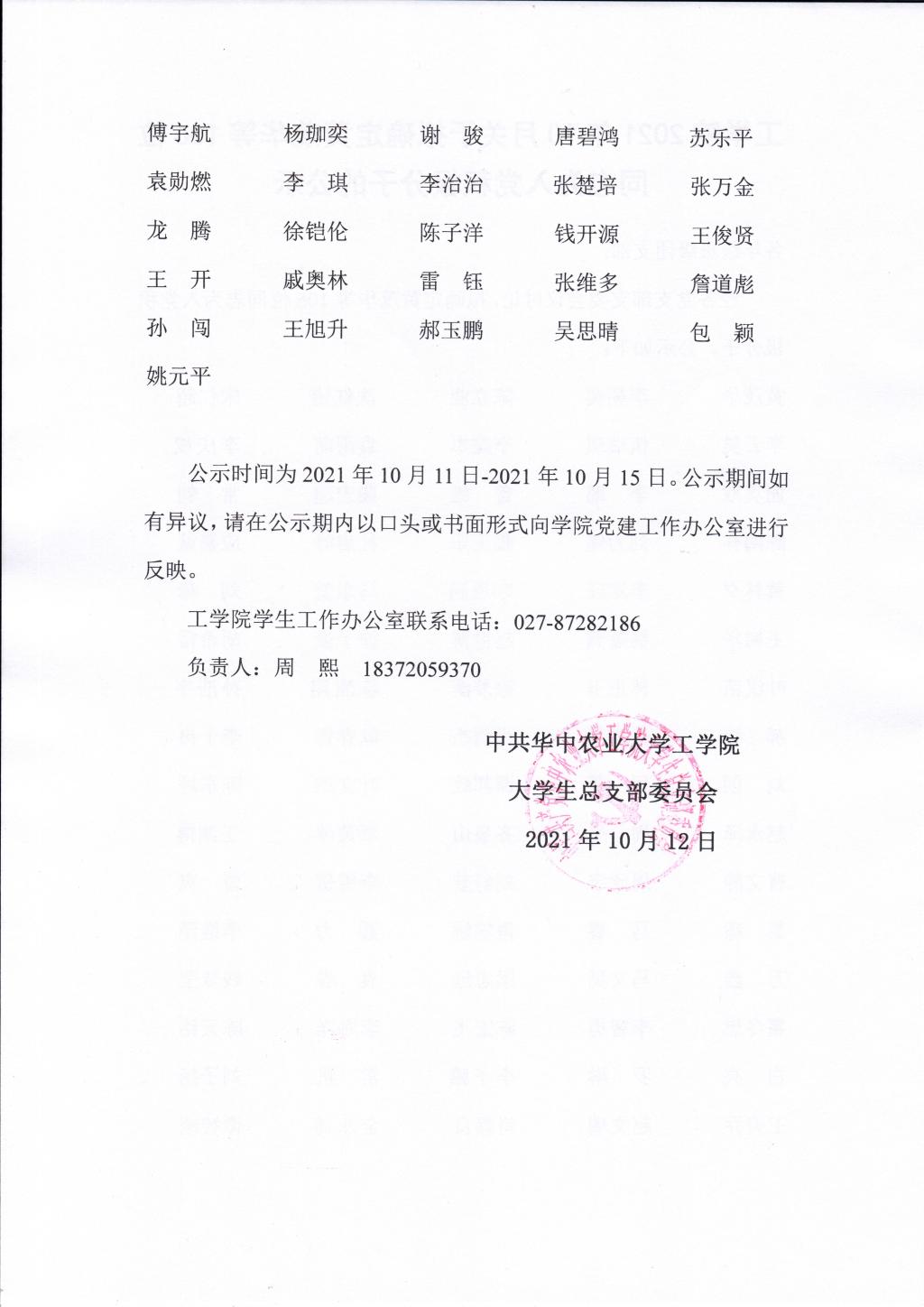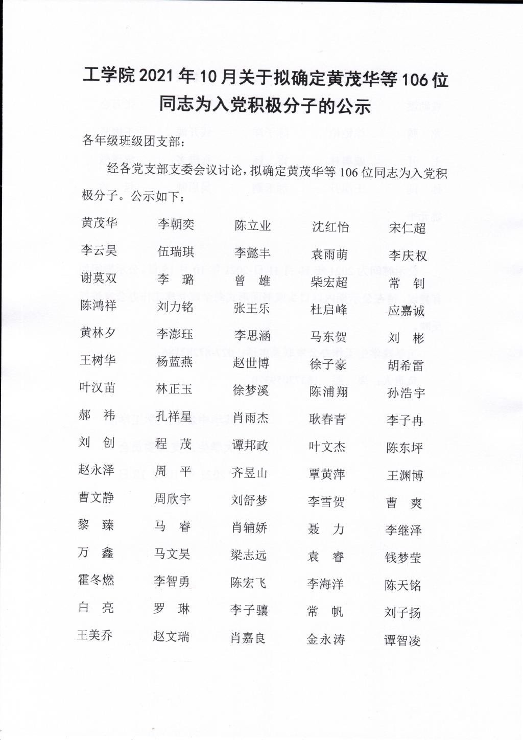 2021年10月关于拟确定黄茂华等106位同志为入党积极分子的公示