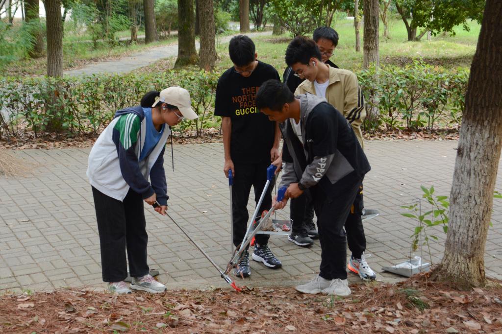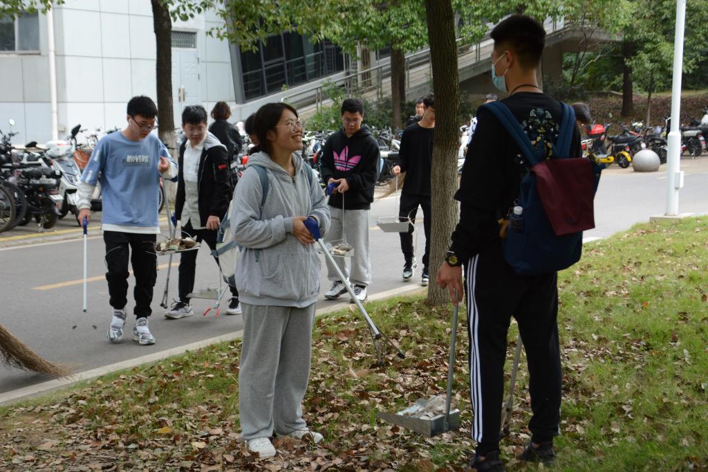 活动伊始,同学们在指定区域集合,用扫帚、夹子等工具有序清扫,不放过每一块垃圾,不漏下每一个角落,大家齐心协力,将责任区域打扫的整洁一新。