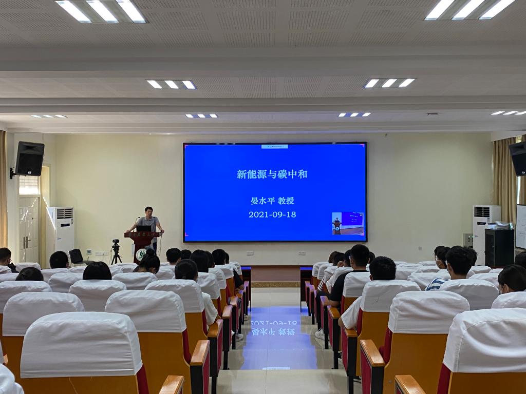 在新能源与碳中和的讲座中,晏水平教授表示:“新能源资源潜力大,环境污染低,可永续利用,是有利于人与自然和谐发展的重要能源。随着传统能源供需失衡、全球气候日益变暖,对新能源和能源新技术的开发与利用迫在眉睫。”通过详细的数据分析,晏老师引领新生们认识世界能源的复杂局势,走进我国能源与动力工程的大门。“没想到,世界能源局势竟然这么严峻,我一定会努力学习,将来在新能源领域为祖国做出贡献。”讲座结束后,一位新生诚恳的说道。