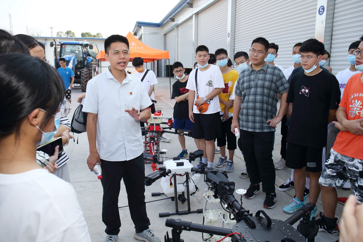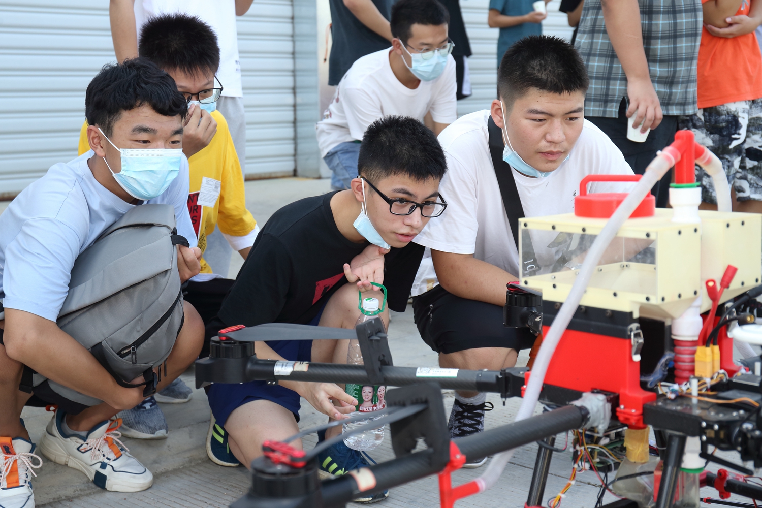 整地、播种、田间管理,各式农机一字排开;上升、滑翔、盘旋,无人机展科技之美。发动机轰鸣声、螺旋桨飞转声、人群惊呼声,与现代农机和无人机的“零距离”接触,工科驾驶基地成为了新生认识现代农业的“第一站”。