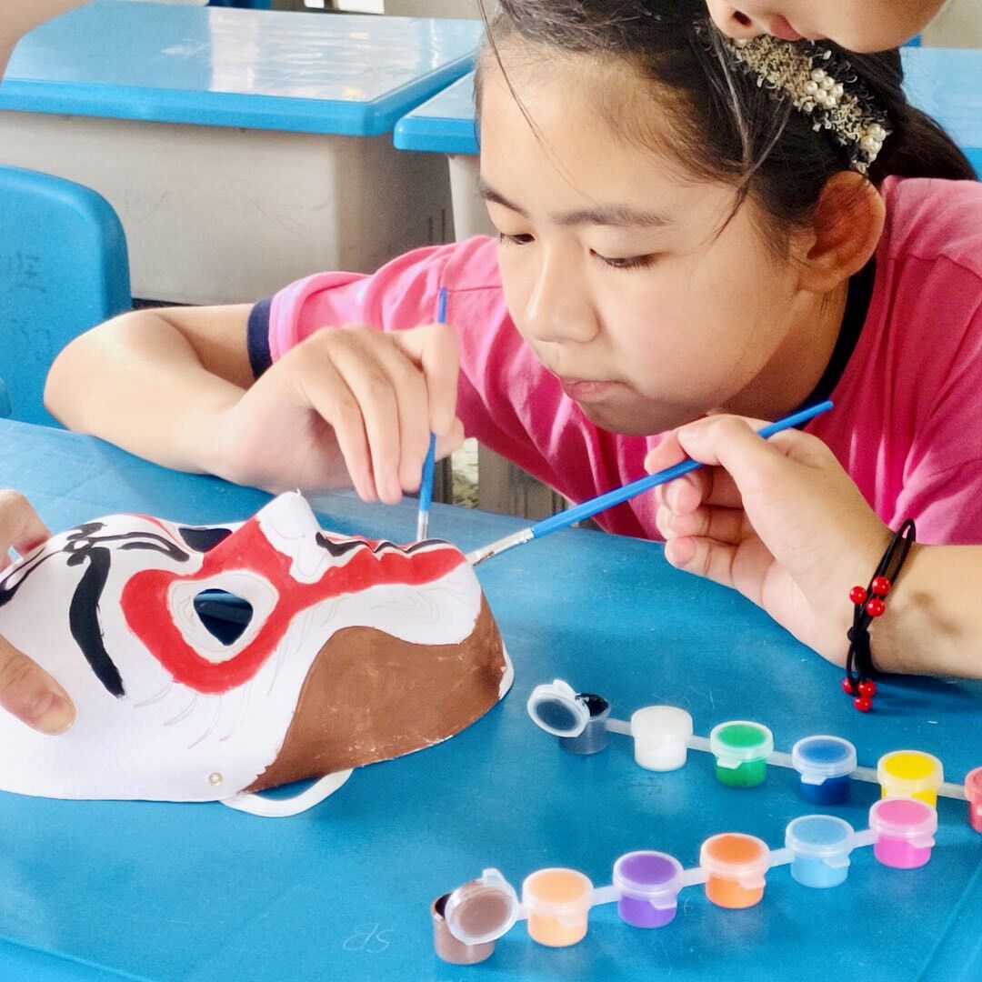 在手工制作课程中,实践团成员带领小朋友们一起完成了京剧脸谱的绘制和简易机械手的制作。课程中,队员们借助提前准备好的20套脸谱制作材料,一边向小朋友们讲述脸谱的历史文化、重要特征,一边带领大家绘制代表不同人格性格特性的脸谱。“小朋友的世界洁白得像一张纸,他们的世界纯净得一尘不染,我们希望通过绘制不同性格特征的脸谱能在他们的心里种下一个真善美的种子。”实践团成员高小荷说。除了脸谱的绘制,简易机械手的制作也让小朋友们兴致勃勃,课程中,队员们带领小朋友们利用废弃的硬纸板制作了简易机械手,不仅传递了变废为宝的环保精神,还锻炼了小朋友们的实践动手能力,激发与培养了他们对机械、科学、创作的热情。