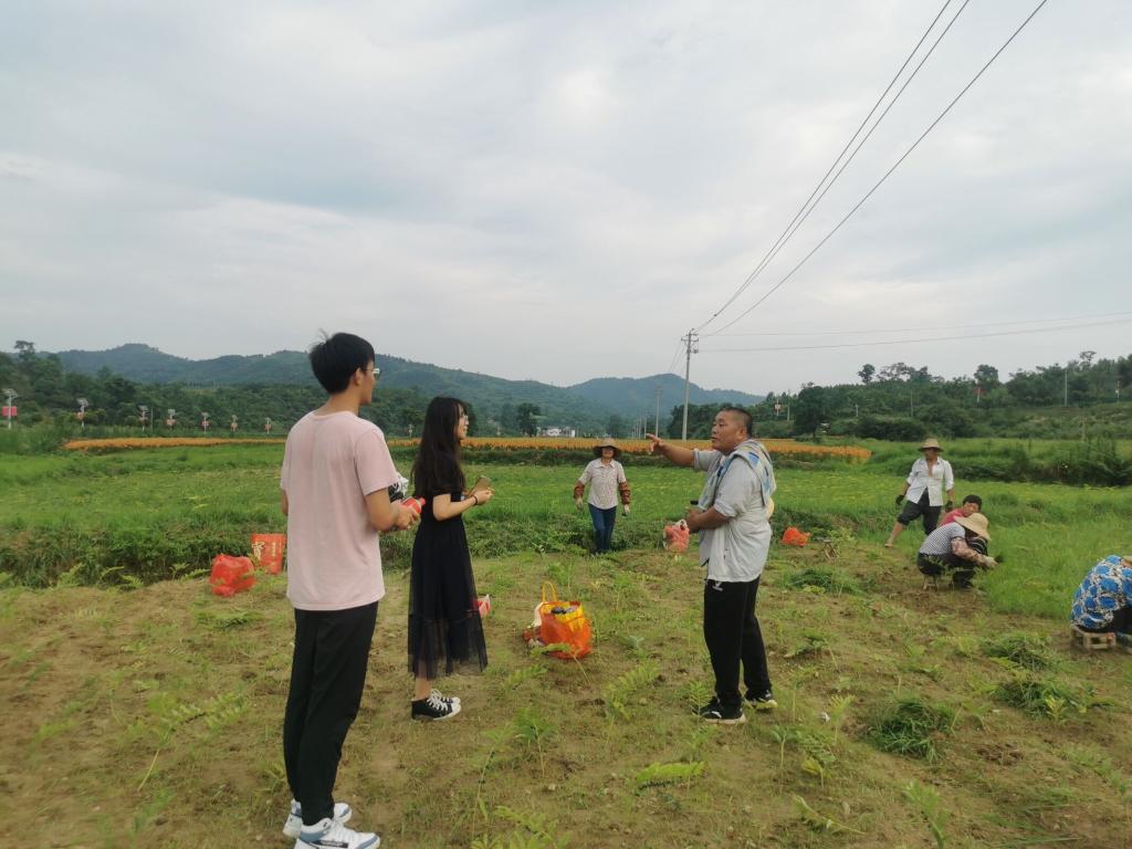 为更好了解金岭村的产业发展,实践团一行走进农田,与正在中药材种植基地除草的村民交流,详细了解中药材的种植情况。据村民们介绍,他们将自家土地承包给村里的“人民公司”统一种植管理,“人民公司”向他们每年交付租金,同时雇佣他们参与药材的种植管理并付佣金,在整合农村零散土地发展规模种植业的同时也为村民提供了就业岗位,增加了农民的收入。在对康养中心和饮片厂附近的农户走访调研中,实践团发现,绝大多数农户目前的农田经营已经可以满足自给自足,部分农户还会借助农产品自主销售来获取更多的收益。对于金岭村未来发展的发展,一位村民谈到,虽然金岭村经济已经有很大的发展,但仍然不足以吸引年轻人返乡创业,未来可以多发展一些新的产业,建设形成一个更加多元化、年轻化的市场,吸引更多年轻人返乡干事创业。