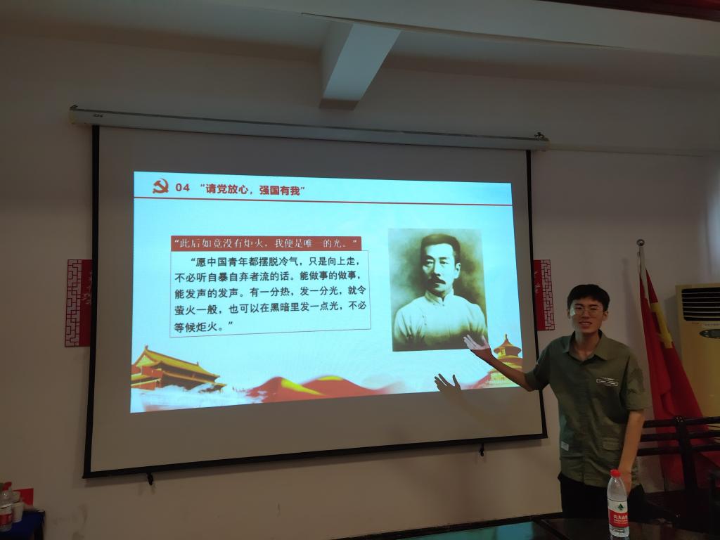 活动最后,全体起立,在杨晓龙同学的带领下,齐声呐喊“请党放心,强国有我”,铿锵有力的誓言回响在整个房间。