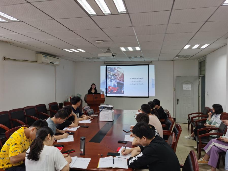 活动开始后,全体党员在组织委员刘婷婷带领下重温入党誓词并按期缴纳了当月党费。随后由马克思主义公司的杜彧坤同志带领全体支部成员学习了百年中共党史的光辉历程,杜彧坤同志从1921年党的建立开始讲起一直到这次新冠的疫情,讲述了党波澜壮阔的壮丽史篇,在总结时她讲到:“开展党史学习教育的一个重要目的就是要通过学习党的百年历程坚定理想信念,用党的光荣传统和优良作风砥砺政治信仰,用党的历史经验和伟大成就鼓舞精神斗志,用党的信仰信念和革命精神凝聚力量。”