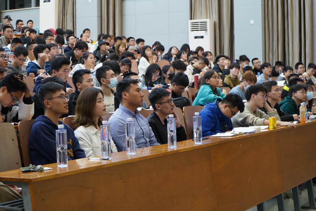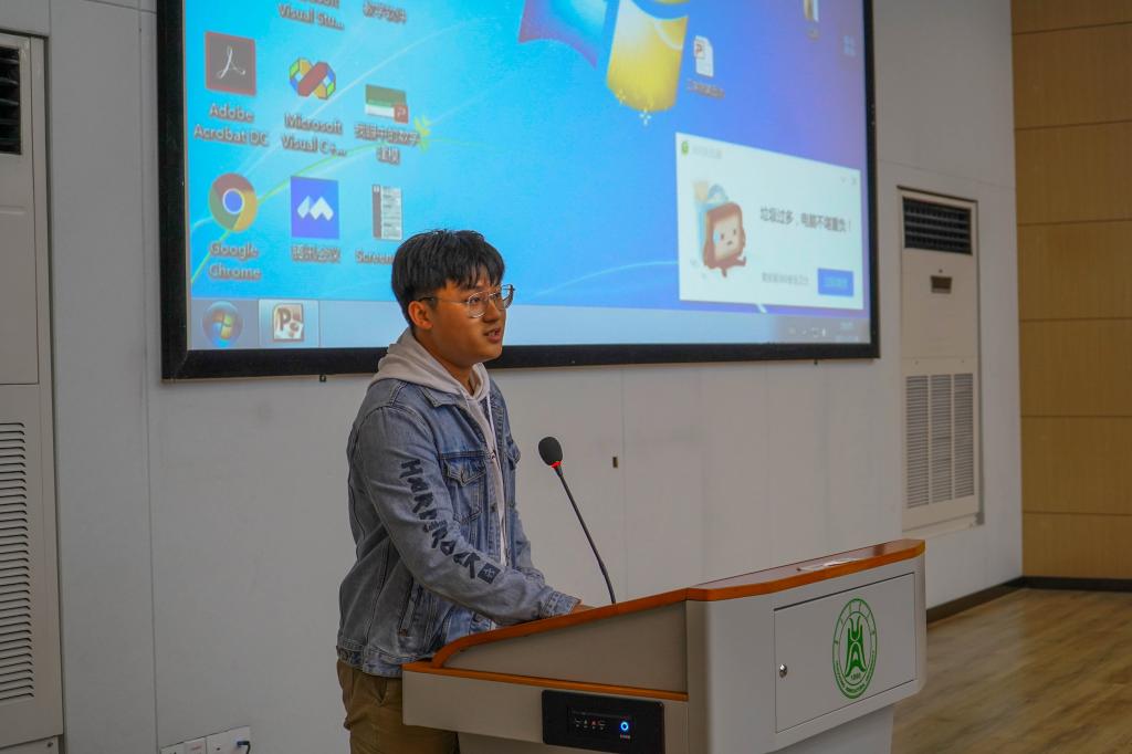 优秀员工干部李自拓从成绩、科研经历和社会工作进行了自己的分享。李自拓通过分享学习数学建模的过程,告诉同学们要做一个真实且自新的自己,从真实到自信。李自拓也向同学们聊了自己的心路历程,他说:“未来未知,要趁现在把握自己。生命是一个长期积累的过程,并不会因为某一件小事而改变很多,所以要时时刻刻的努力,踏踏实实的进步。希望同学们做一个懂生活,并且享受生活的人。”