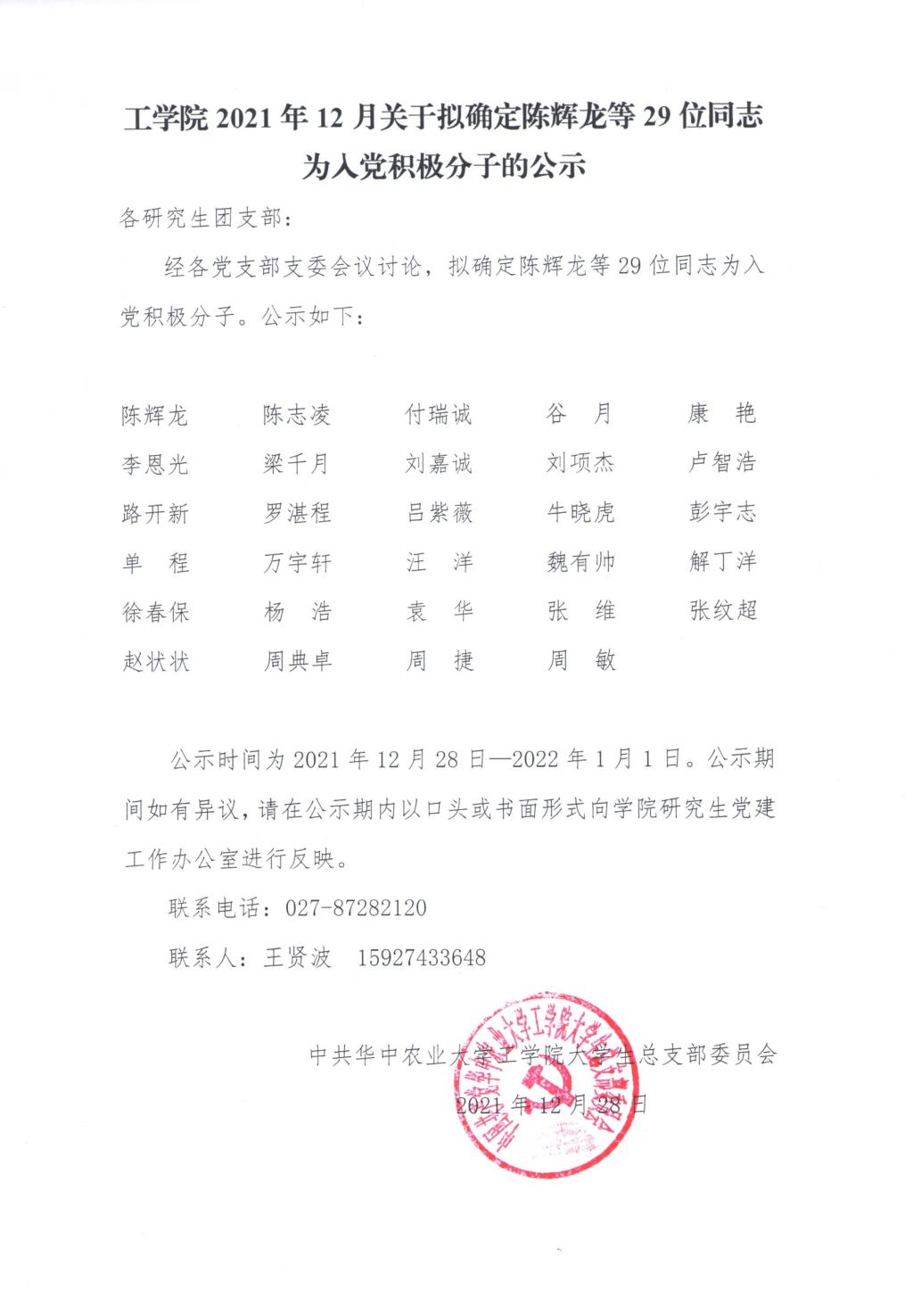 【研】2021年12月关于拟确定陈辉龙等29位同志为入党积极分子的公示