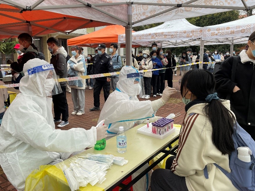 在各轮核酸检测中,公司志愿者分成不同的工作小组各司其职,助力核酸检测现场秩序引导、信息录入、手部消杀有序进行,他们用力所能及的行动为校园疫情防控贡献力量,志愿者和医务工作者们忙碌的身影成为了校园里一道特殊的风景。
