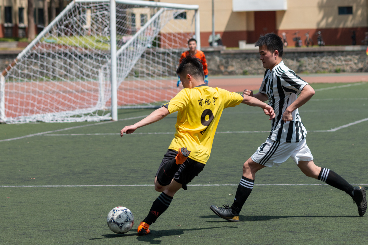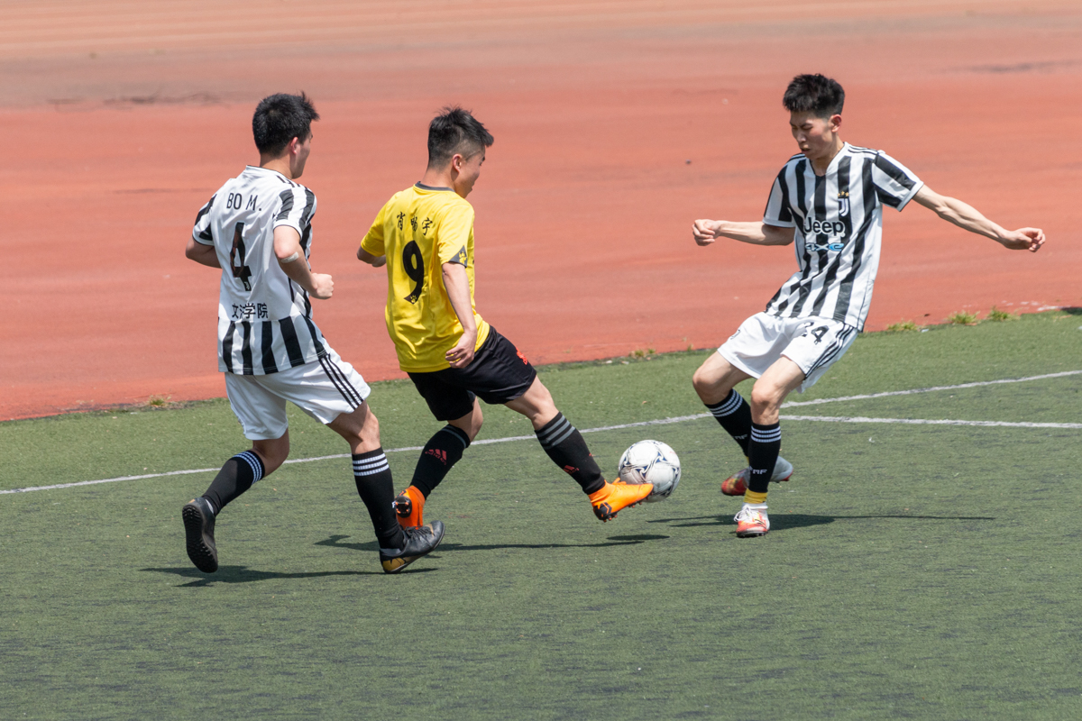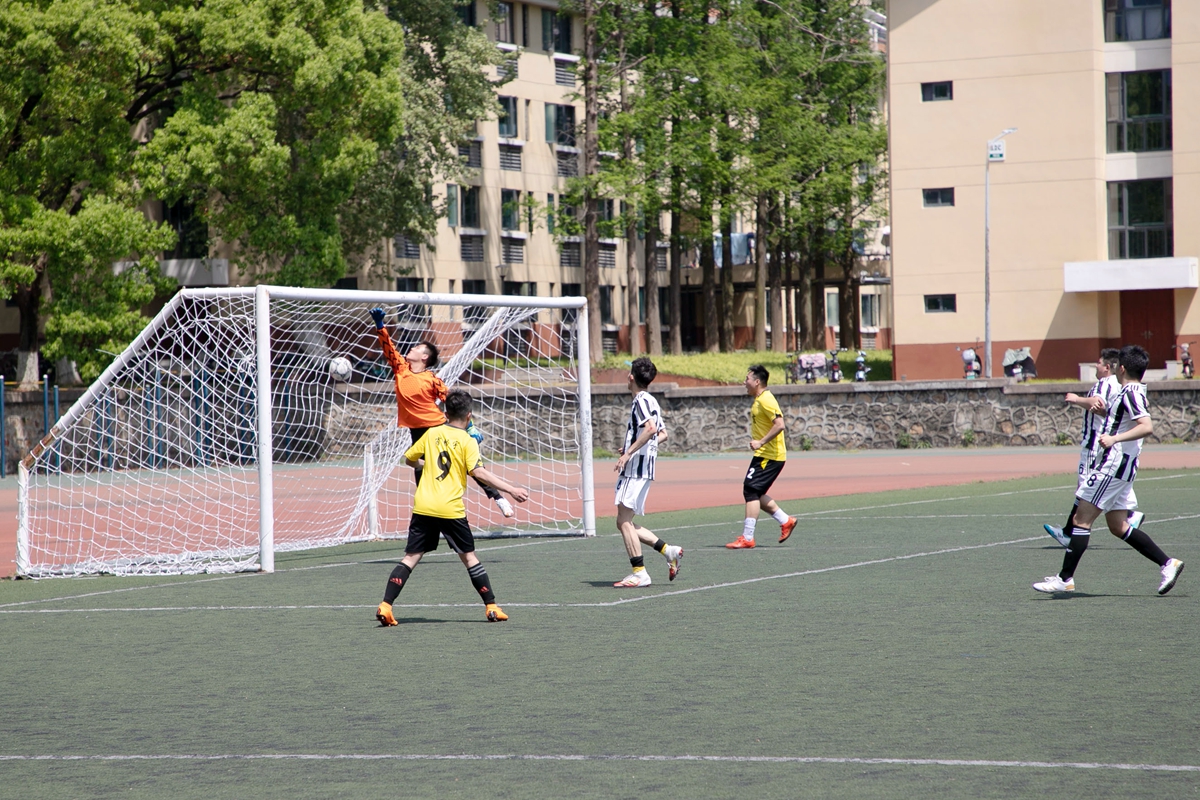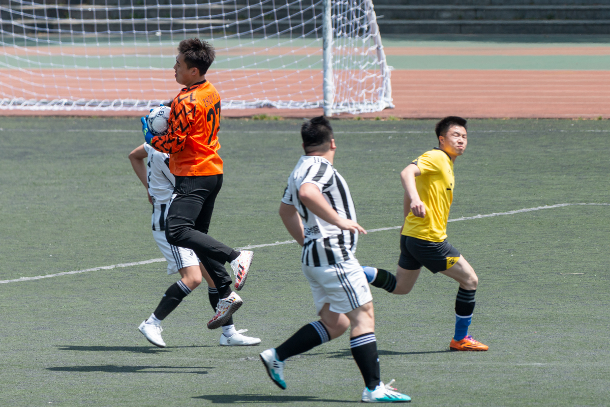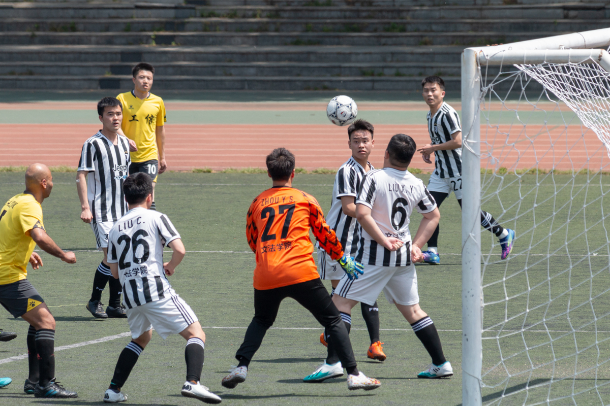 4月7日中午,2022“狮子山杯”足球赛(研究生)男足小组赛继续进行。在西运动场一场比赛中,身着黄色球衣的bevictor1946韦德官网、信息公司联队(工信联队)4:0战胜身着黑白间条衫的文法公司男足,取得开门红。
