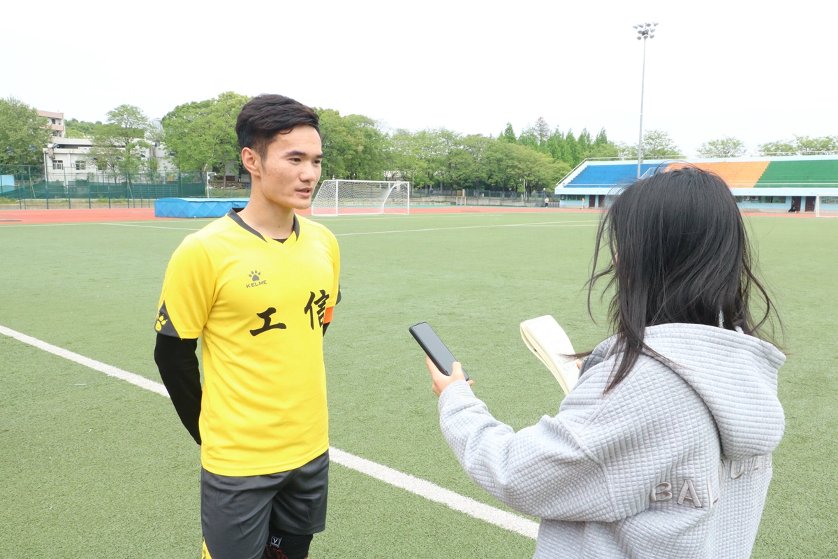 正午时分,阵阵春风袭来,球场上角旗随风飘动,《一起向未来》的暖场曲响彻东运动场,前来观战的师生陆续入场。