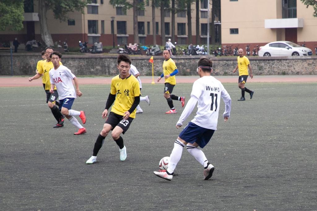 面对开场不久的失利,工信队顶住压力,积极组织反攻。第12分钟,工信队25号球员余展晖瞅准机会,直接将球传给禁区附近的7号球员沈威,沈威果断处理,直接打门,1:1,工信队将比分拉平,全场呼声沸腾,气氛热烈。