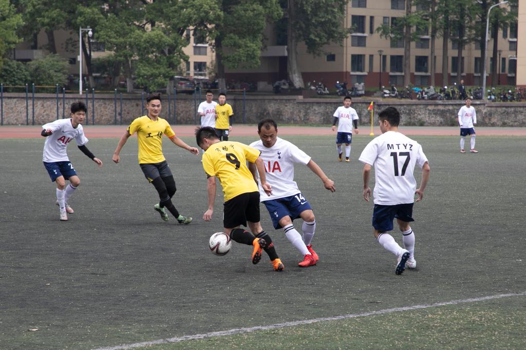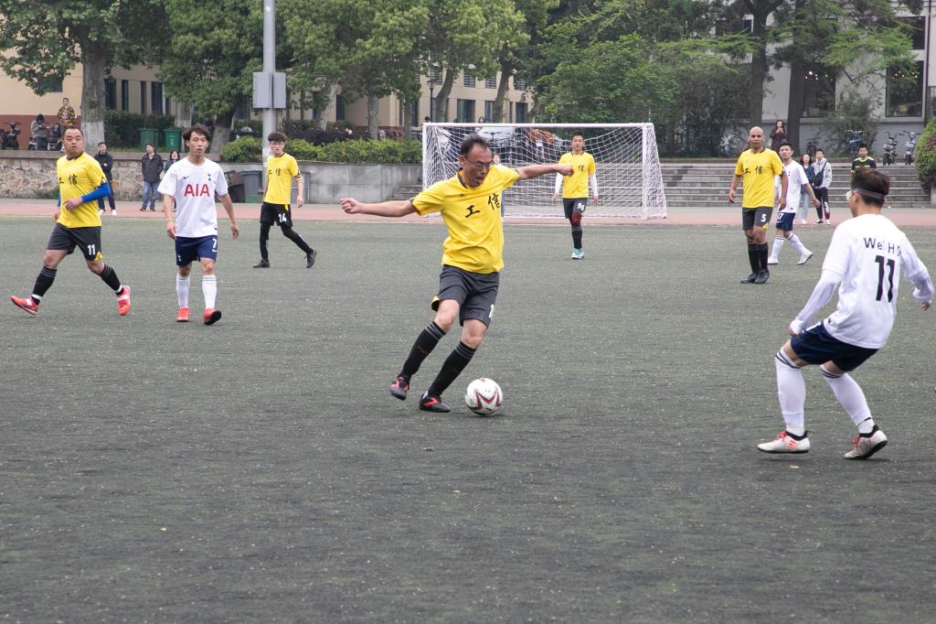 4月17日中午,2022“狮子山杯”足球赛(研究生)男足小组赛第7个比赛日进行。在西运动场的比赛中,工学信息男足联队2:1战胜资环公司男足,取得小组三连胜。