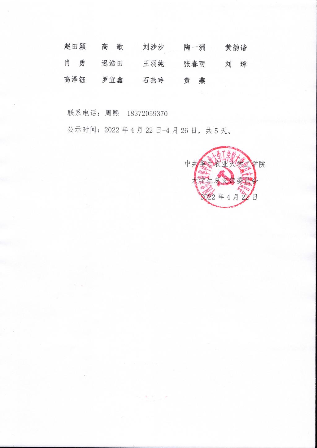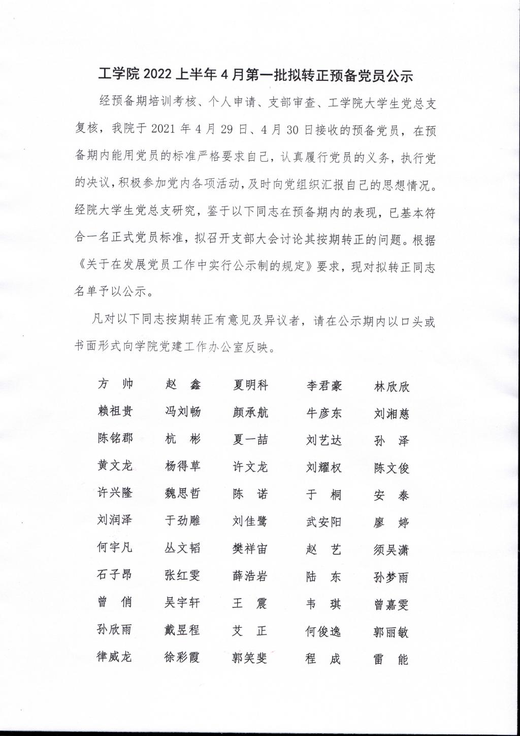 2022上半年4月第一批拟转正本科生预备党员公示