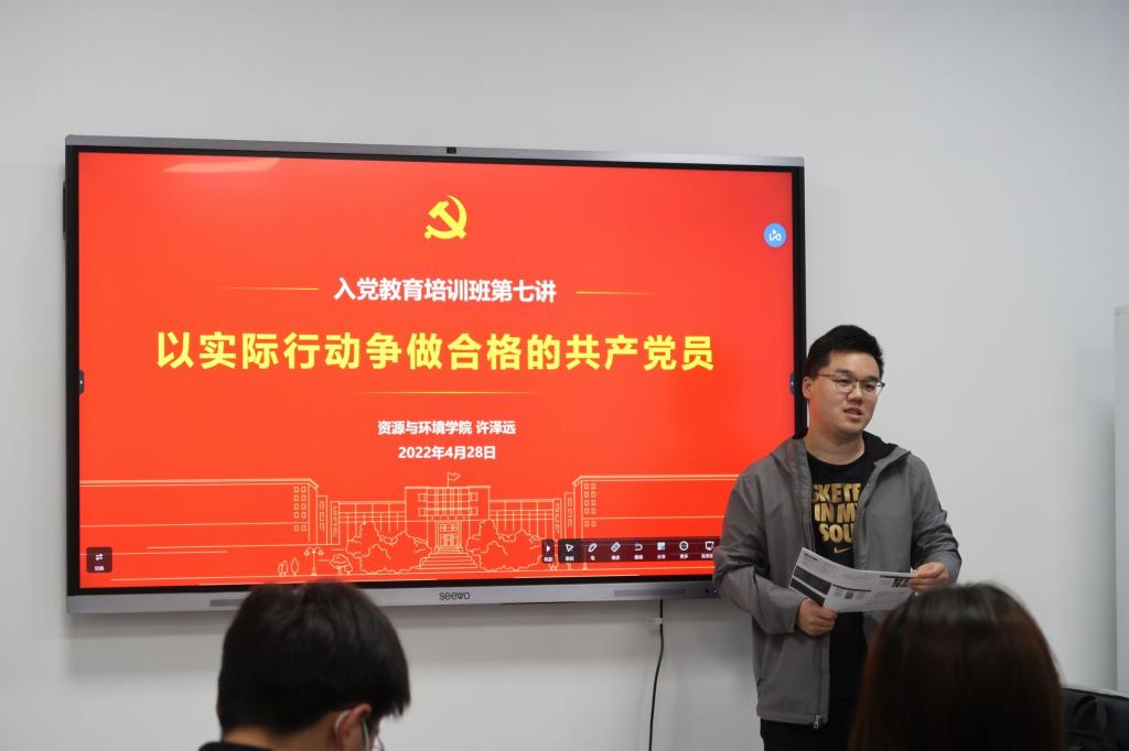 随后,许泽远对入党流程做了进一步的强调,他指出,各位发展对象必须强化个人纪律意识,只有真正把入党当做人生中的一件大事,严肃要求自己、永远跟党走,才可能真正成为一名光荣的共产党员。针对党龄计算、入党时间等常见问题,他也为同学们进行了详细的解答。许泽远向同学们提出了合格党员的六大标准,即坚定理想信念、牢记党的宗旨、永葆政治本色、坚持勤奋学习、积极努力工作、自觉遵守纪律。他希望同学们努力学习身边的榜样,积极发挥一名党员先锋模范作用。