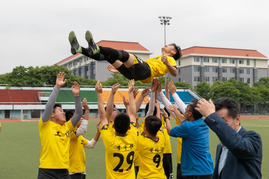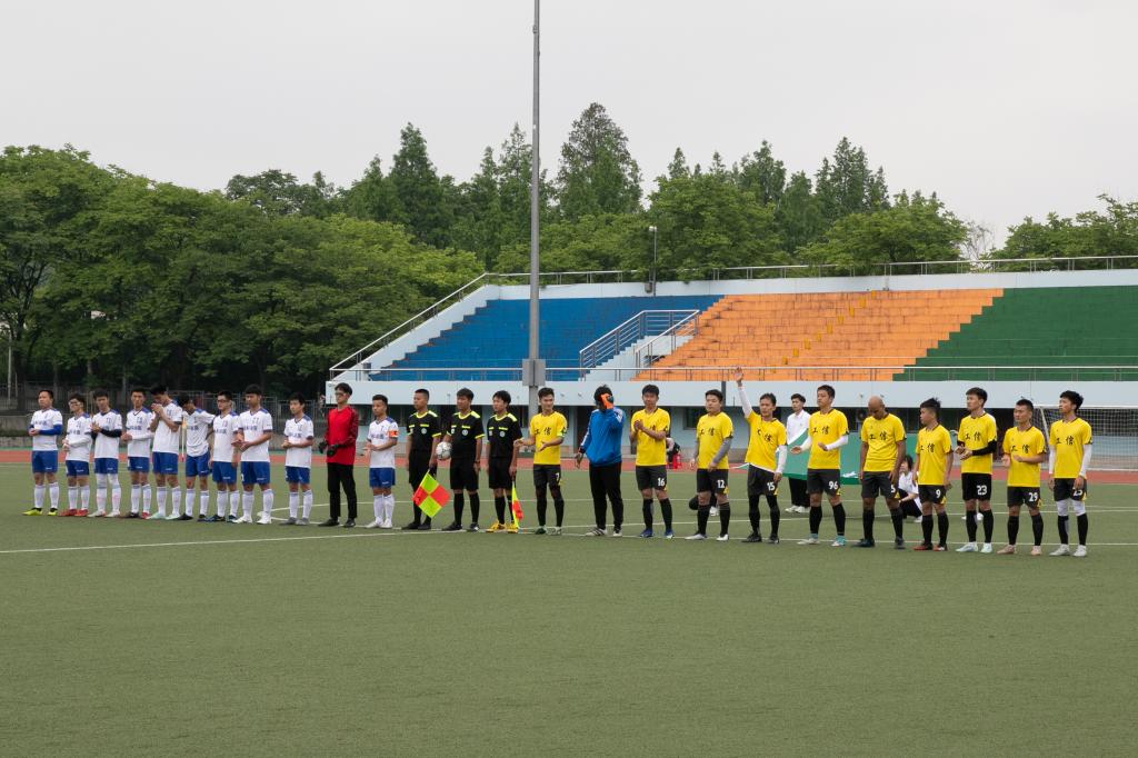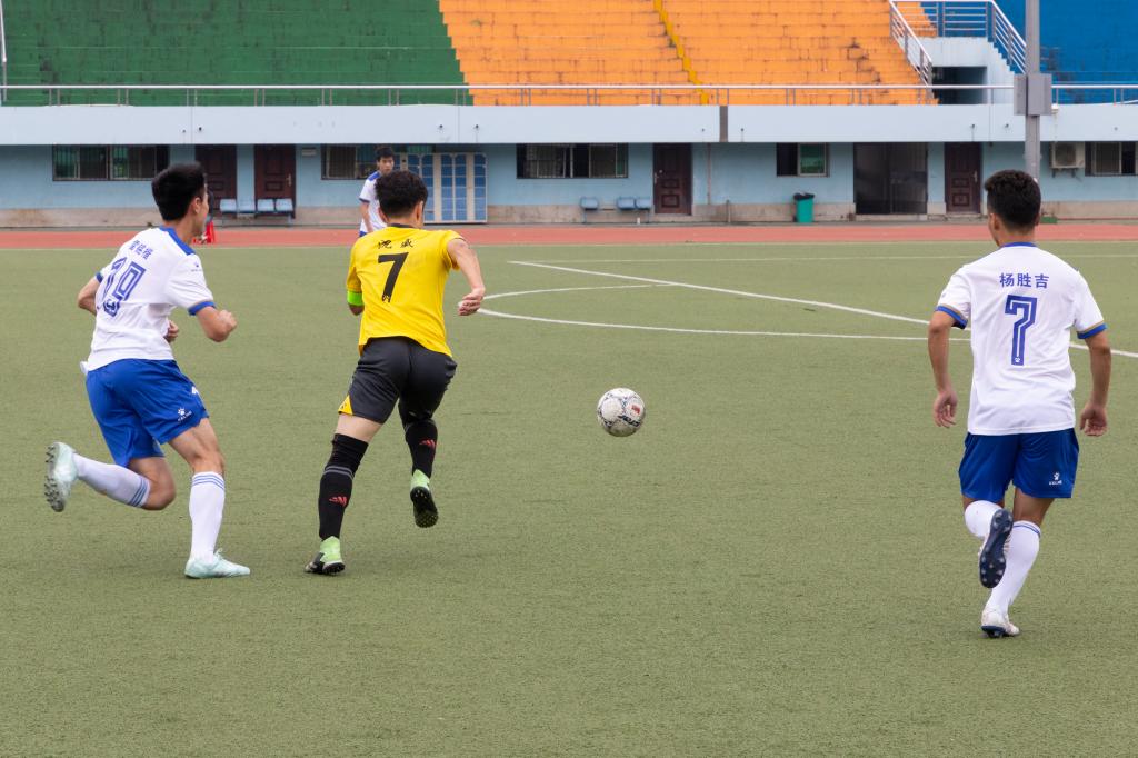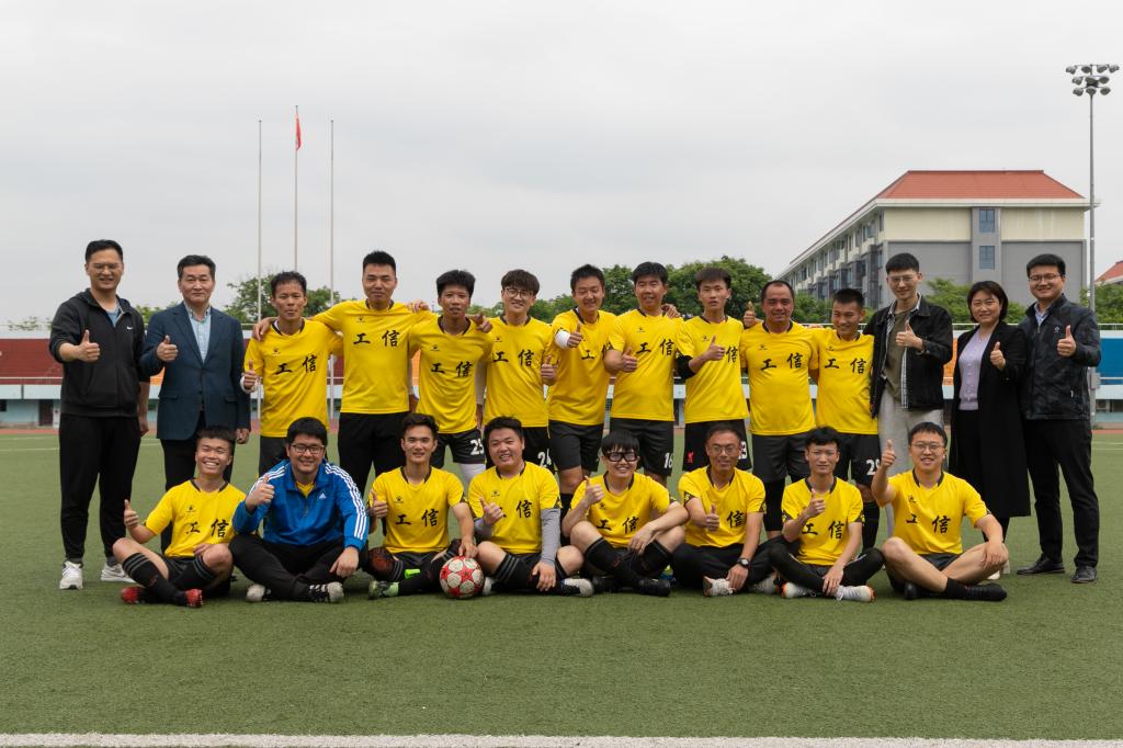 4月29日中午,2022“狮子山杯”足球赛(研究生)男足季军争夺赛激情开战。在东运动场足球场上,身穿黄色球衣的工信联队以2:1战胜身穿白色球衣的动科动医公司队,夺得季军。