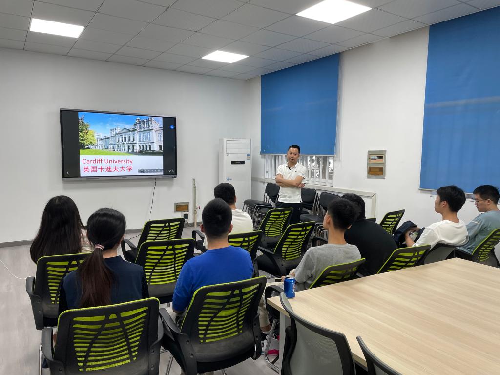 宣讲会上,杨欣为同学们介绍了英国卡迪夫大学的基本情况,展示了卡迪夫大学的校园风光。针对同学们的提问,杨欣向大家介绍了卡迪夫大学与bv1946伟德国际始于英国的本硕联培模式与人才培养方案。杨欣表示,卡迪夫大学的学术氛围浓厚、生活环境优美,在半导体、机器人等相关学科领域拥有优秀的导师团队,能够为同学们提供良好的学习科研指导。机电2001班罗翔宇就“3+1”项目向杨老师提问,杨欣向同学们强调了英语学习的重要性,他表示,出国深造的前提是英语能力要过关,同时还要提升自主学习能力、拓宽思维和视野,他为同学们在本科阶段需要提前进行的准备提供了相关意见建议。机制2002班王桐新从个人情况出发,向杨老师提出了自己对国际交流项目存在的困惑,杨老师在鼓励大家的同时,对同学们的交流深造目的及未来发展前景进行了分析,引发了同学们的积极思考和讨论交流。