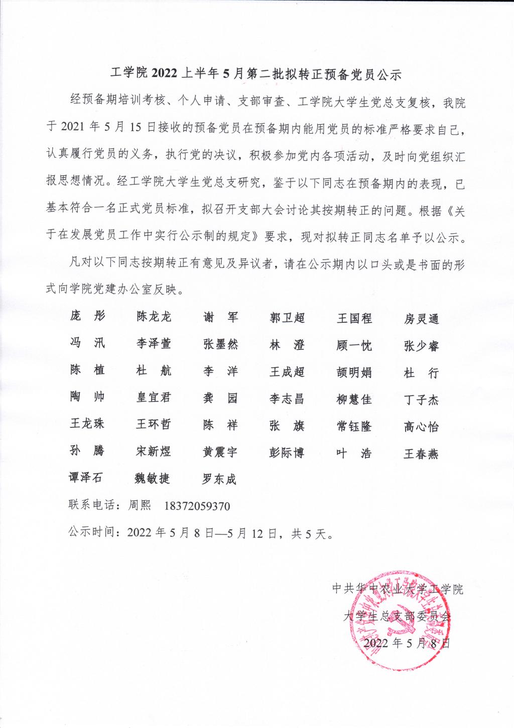 2022上半年5月第二批拟转正预备党员公示