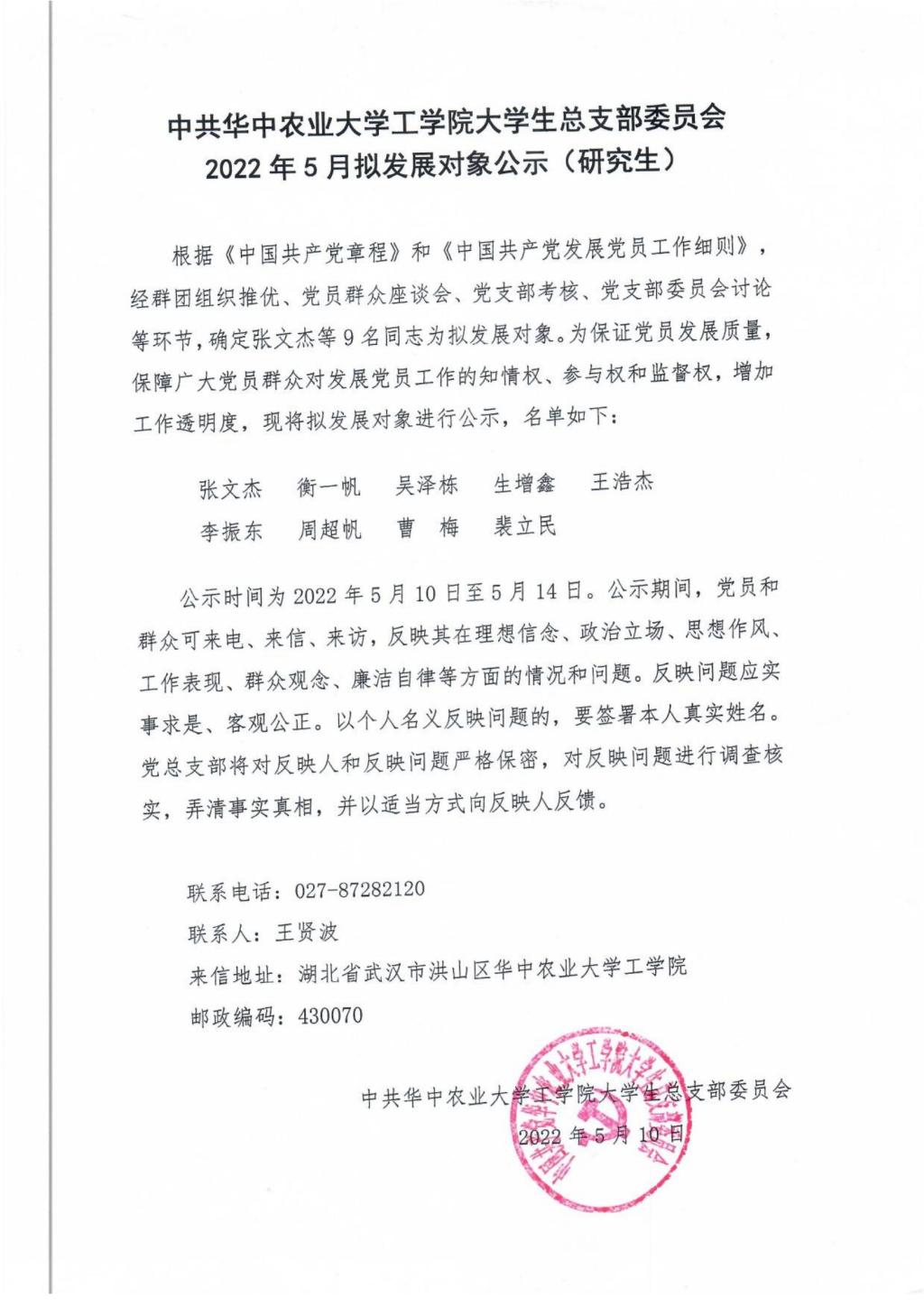 【研】中共bevictor1946韦德官网老员工总支部委员会2022年5月拟发展对象公示(研究生)