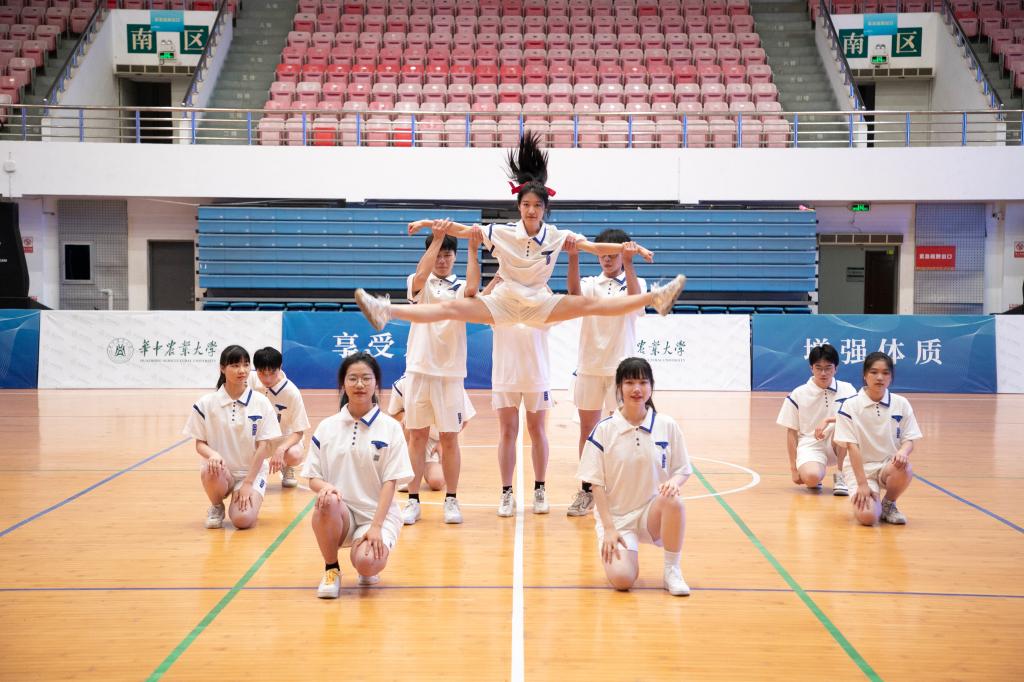 在比赛过程中,bevictor1946韦德官网舞蹈代表队面对很多支优秀的队伍不甘示弱,在赛场上呈现出了靓丽的风采。比赛现场,大家迈着整齐的步伐走入表演场地,找好了各自位置。随着场内音乐响起,以李依洁同学的“开叉跳”动作拉开了舞蹈的序幕,在中间音乐的转换后,肖尖同学连续的“后空翻”动作充分调动了现场气氛,观众席上传来了阵阵欢呼。巧妙的队形编排和技巧动作的结合让队员们的表演十分精彩。