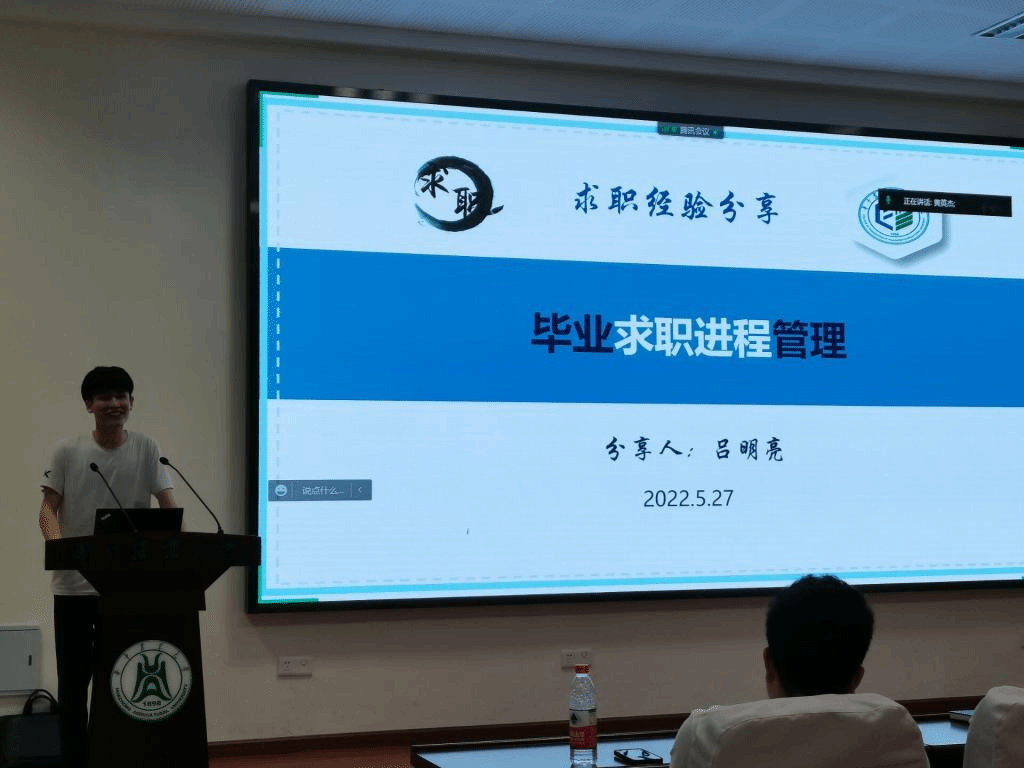 几位签约就业的优秀毕业生代表也向同学们分享了自己的求职经验。成功签约美的公司的吕明亮同学为同学们介绍了自己丰富的求职经历,并从求职途径、简历制作与投递、面试准备及过程、心态调整方面进行了全面的分享,最后总结道“毕业应聘忙,求职心别慌”。李畅同学以明确目标、找准定位为主题分享自己的求职经历,强调大家要注重自己综合能力的提升。