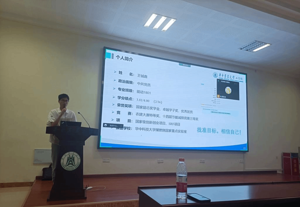 王一坤同学通过自己高分考取本校硕士研究生的经历为同学们从初期准备、科目管理、时间规划和注意事项四个方面详细介绍了自己的考研经验,干货满满。考取华中科技大学的王国程同学告诉大家:“考研并不难,难点在于自觉”,同时给大家分享了考研过程中目标的确定、心态的调整、学习进度的规划等方面的经验,重点强调了考研是场信息战,并提醒同学们去芜存菁,及时筛选出对自己有用的信息。“当你觉得很累的时候,说明你正在走上坡路,”赵晓静同学分享了自己考取中国农业大学的经历,详细介绍了考研资料获取、时间进度、课程复习等方面的经验,“建议同学们注意身体健康、保持积极心态,才能应对随考研而来的风险和挑战,”赵晓静同学说道。考取中南大学的邓伟其同学表示,选择一所适合自己的公司有时候比努力更重要,并从院校选择、专业课、英语、政治复习方法上进行了具体介绍并分享了宝贵的经验。