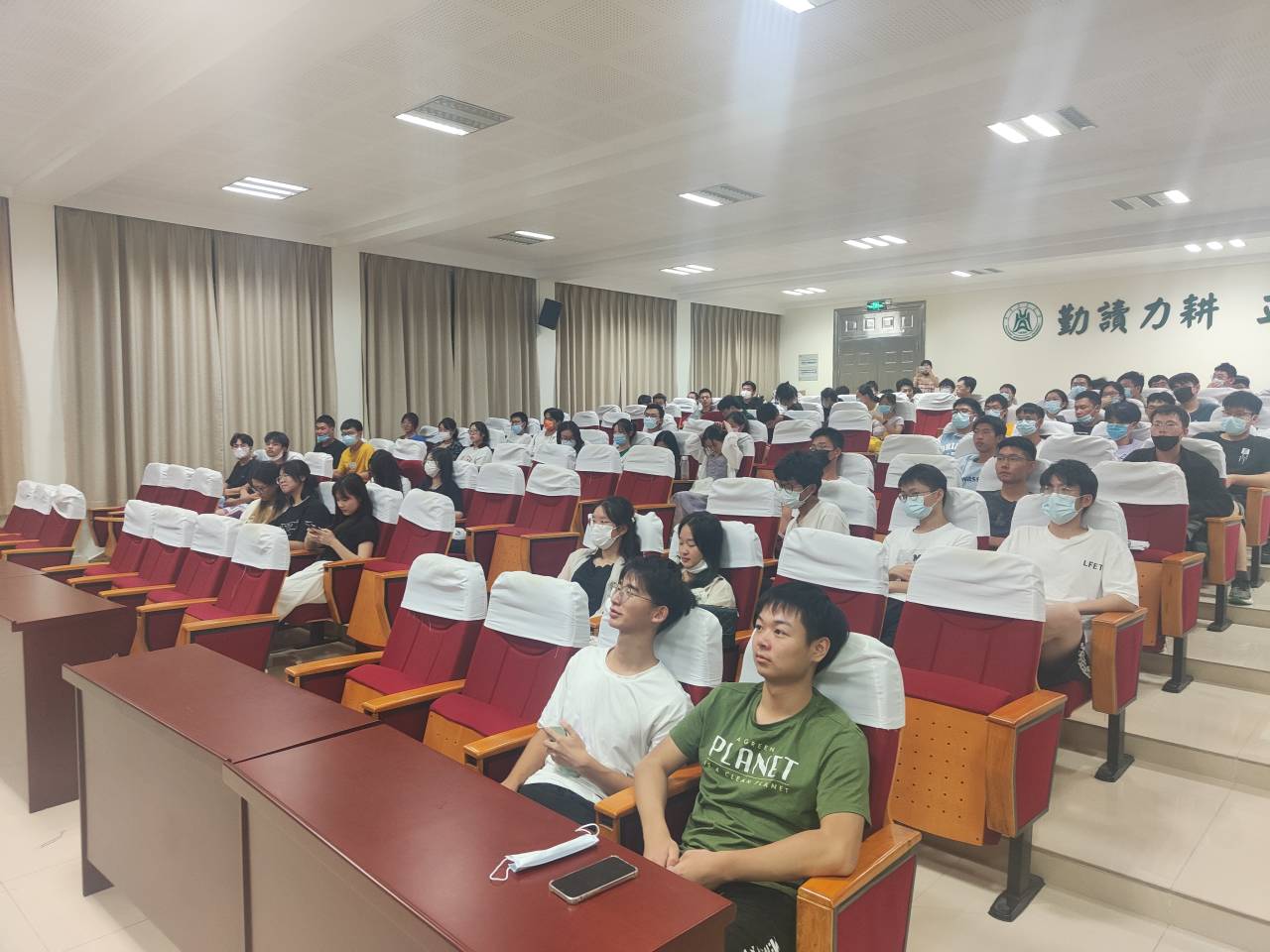 9月8日晚19点,活动在工程楼A111准时开始,伴随着会议室的灯光暗下,电影《铁道英雄》的片头缓缓开始播放,该片是由杨枫指导,张涵予、范伟等主演的动作片,讲述了抗日战争时期,临城枣庄英勇的“铁道队”与敌人斗智斗勇,殊死捍卫家园的故事。电影的内容加上演员精湛的表演仿佛将大家拉回当初那段令人心痛的历史,让同学们见证了先烈们为了祖国的统一而不计生死,勇于牺牲的革命精神。电影贴合活动主题,影片内容精彩,场下103位同学认真观看,情绪随着影片的内容跌宕,剧情激扬处偶尔传来同学们微微的惊呼声。