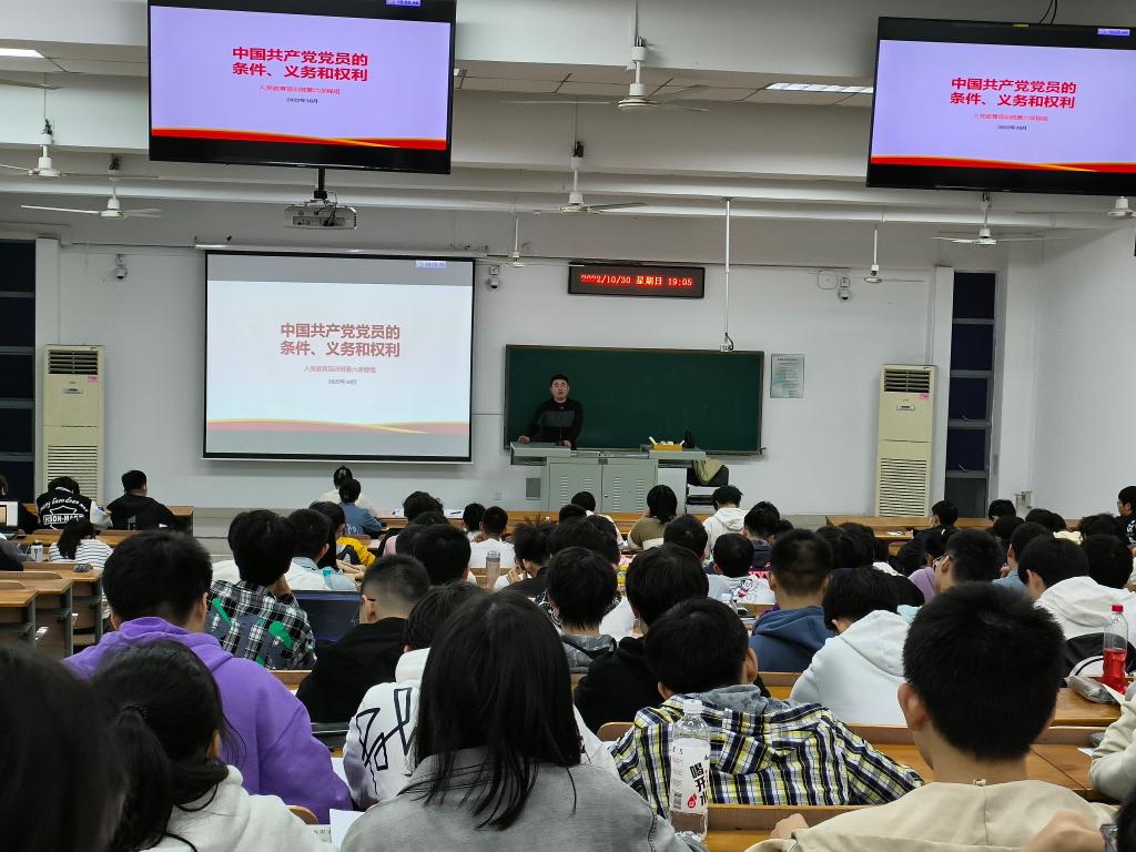 10月30日晚,bevictor1946韦德官网第82期党校培训班顺利开班。来自2020级、2021级的145名入党积极分子在三教C105教室参加开班仪式,人力资源部周熙老师为入党积极分子们带来了《中国共产党党员的条件、义务和权利》的专题培训。