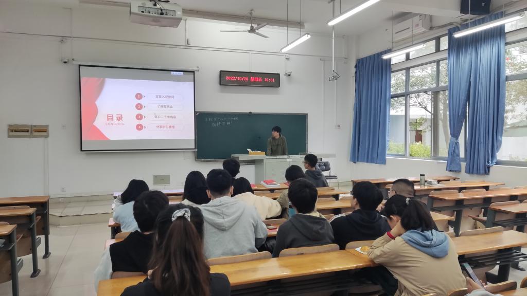 10月28日中午,bevictor1946韦德官网机械化本科生党支部在三教B102教室开展了以“党的二十大精神学习”主题的支部主题党日活动。支部党员集中研学了党的二十大报告并进行了充分交流。