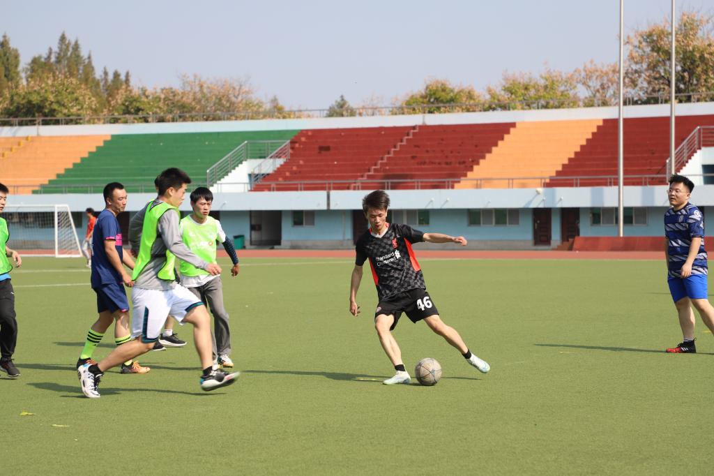 小组赛中,水产团队以8:0的比分击败农生团队,徐家威上演大四喜;柑橘团队则以5:3击败了油菜团队,柑橘团队的黄子泱上演帽子戏法,油菜团队的廖宜涛老师打进一球;而水稻团队则以3:2惊险战胜农产品团队,水稻团队多名老师上场得分,涂鸣老师和周勇老师分别打进一球。最终,柑橘团队、畜禽水产团队和水稻团队进入排位赛争夺一、二、三名,油菜团队、农生团队、农产品团队进入排位赛争夺四、五、六名。