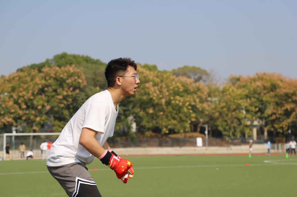 守门员鄢钱全神贯注防守