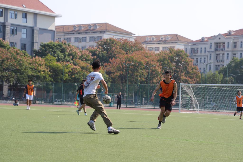 柑橘团队与水稻团队两方球员“来势汹汹”,准备争夺冠军。柑橘团队一开始就积极地将足球控制在脚下,而水稻团队的队员积极在自己的半场进行防守,他们的想法是先稳住防守,趁机将断下的球快速打入到前场。每当落入防守的时候,就有两个人负责盯防柑橘团队的前锋黄子泱,让他不会轻易拿球起速。柑橘团队的进攻方式则比较多样,有时通过边路的突破拿到小角度打门的机会,不过几次尝试都没有攻破水稻团队周勇老师把守的大门。比赛在进行到十多分钟的时候,柑橘团队获得几次直面球门的机会,在短短几分钟之内,黄子泱踢入两球,帮助柑橘团队2:0领先。在上半场临近结束的时候,柑橘团队的守门员在禁区内违例,水稻团队获得一个点球,杨浩主罚稳稳命中。上半场结束,柑橘团队2:1领先水稻团队。