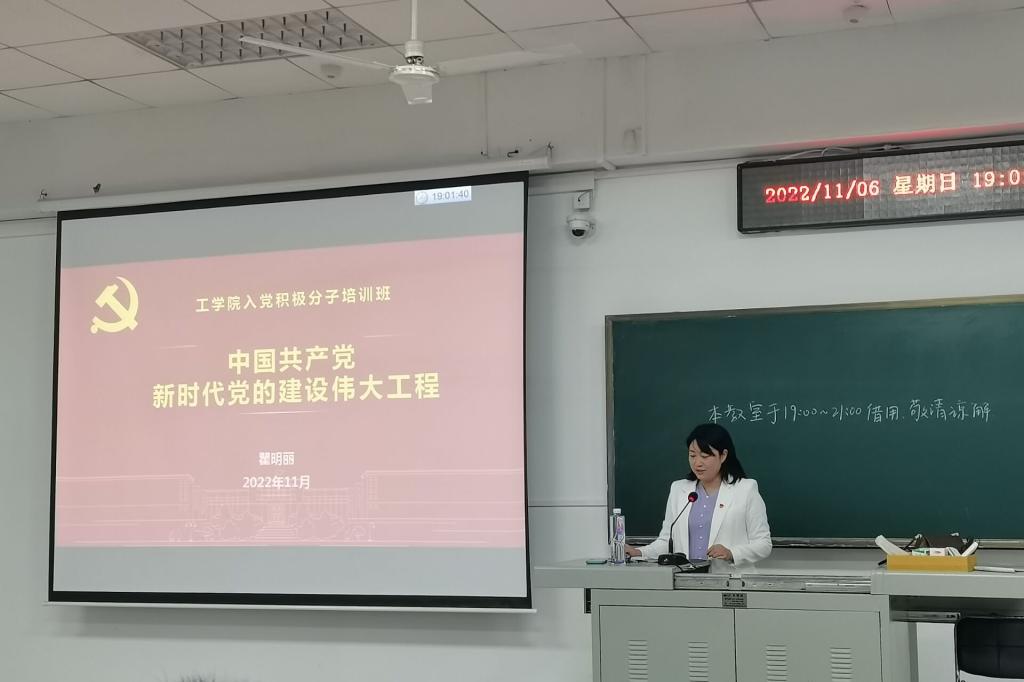 2022年11月6日晚上,bevictor1946韦德官网第82期入党积极分子第二次线下党课在三教C105进行,公司党委副书记瞿明丽同志为150余名入党积极分子讲授“中国共产党新时代党的建设新的伟大工程”专题党课。本次党课内容围绕党的建设伟大工程形成发展及其重大意义、新时代党的建设的总要求与主要内容、推进党的建设新的伟大工程的实践与启示等三个方面进行。