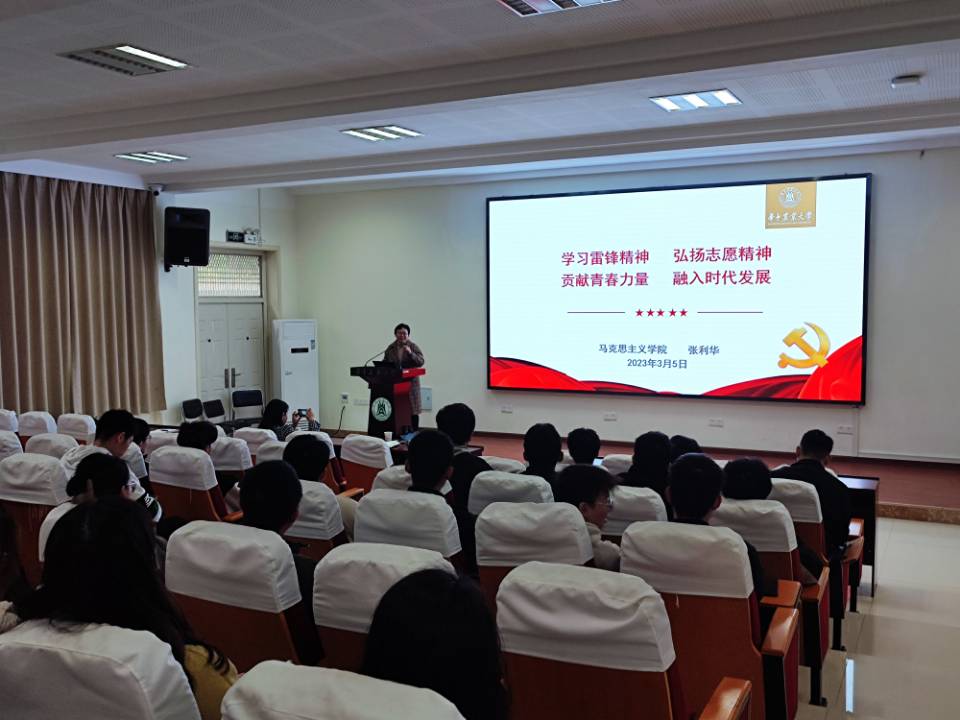 3月5日正值学雷锋纪念日,张利华以“学习雷锋精神,弘扬志愿精神;贡献青春力量,融入时代发展”为主题,从雷锋精神的时代价值、中国青年志愿者行动的发展历程、大力弘扬志愿服务精神等三个方面为同学们讲述雷锋事迹,分享志愿服务故事。她谈到,无论时代如何变迁,雷锋精神永不过时,我们要学习雷锋同志热爱党、热爱祖国、热爱社会主义崇高理想和坚定信念;服务人民、助人为乐的奉献精神;干一行爱一行、专一行精一行的敬业精神;锐意进取、自强不息的创新精神;艰苦奋斗、勤俭节约的创业精神;并把雷锋精神代代传承下去。她讲述了公司员工、“感动中国”年度人物徐本禹和鞠彬彬的志愿服务故事并谈到,我们要跟随优秀员工们的步伐,将“奉献、友爱、互助、进步”的志愿服务精神传递给更多的同学。