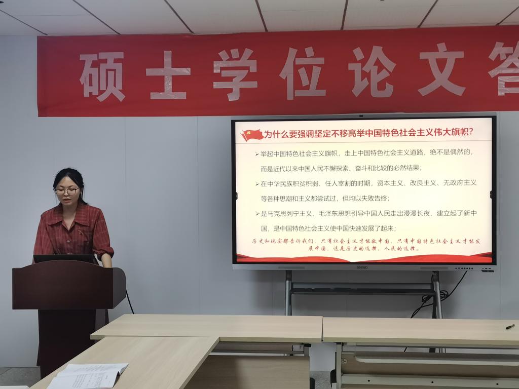 韦诗慧同志围绕“坚定不移高举中国特色社会主义伟大旗帜”分享学习体会,她谈到,新时代新征程,我们青年党员同志要坚定不移高举中国特色社会主义伟大旗帜,要在奋进新时代中留下青春烙印,以青春“小我”书写强国“大我”,在为国奉献中书写人生辉煌,为实现中华民族伟大复兴添砖加瓦。