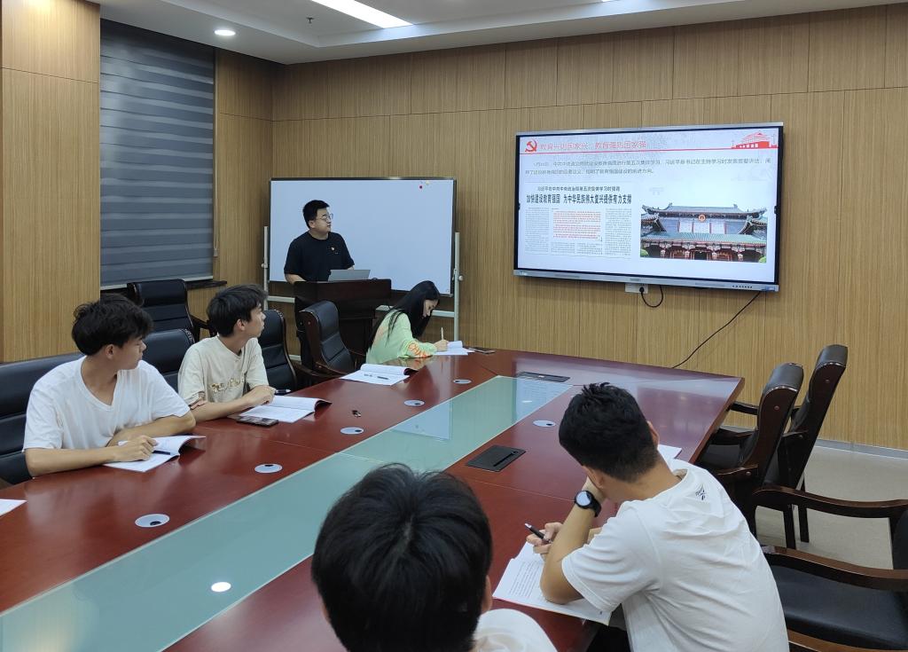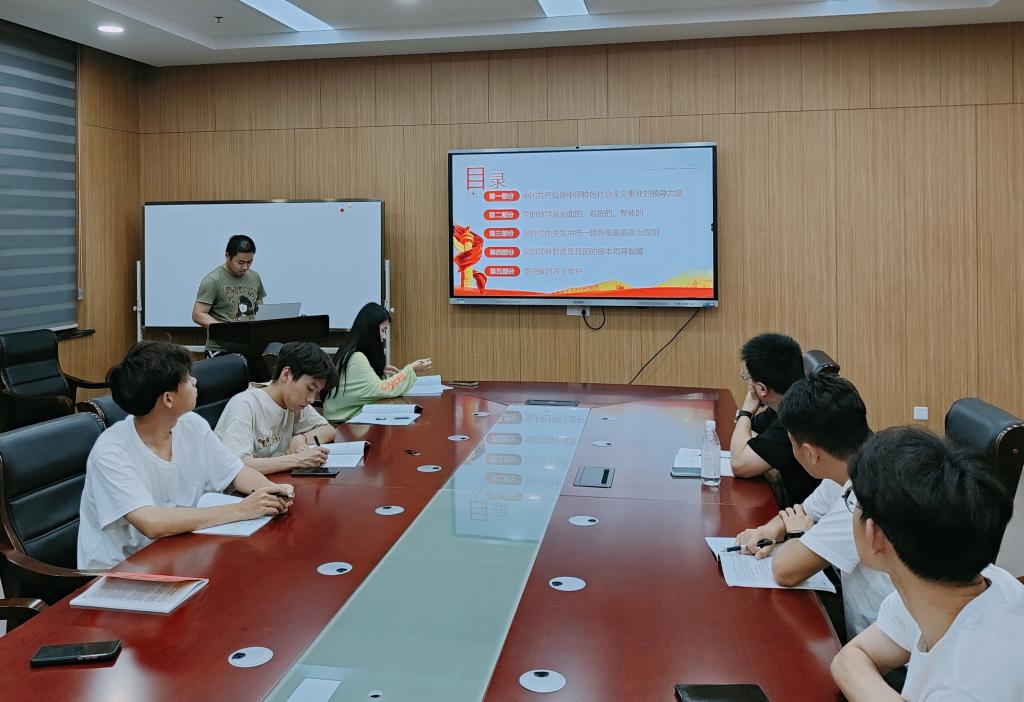 李磊同志领学习近平总书记在中央政治局第五次集体学习时的重要讲话精神,他分享到,我们正当青年,风华正茂,要在学习生活中践行社会主义核心价值观,将社会主义先进文化融入学习中,为成长打好中国底色。努力学习科学文化知识,提高自主创新能力,永远听党话,跟党走,矢志奉献国家和人民。